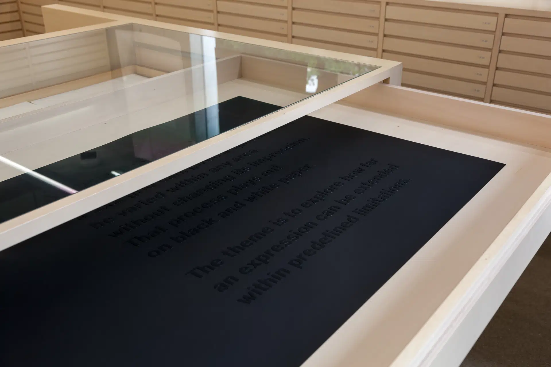 そのプロセスを白と黒の紙に展開しました。 制限の中でいかに表現を拡げられるかをテーマにしています。 (髙谷 廉)