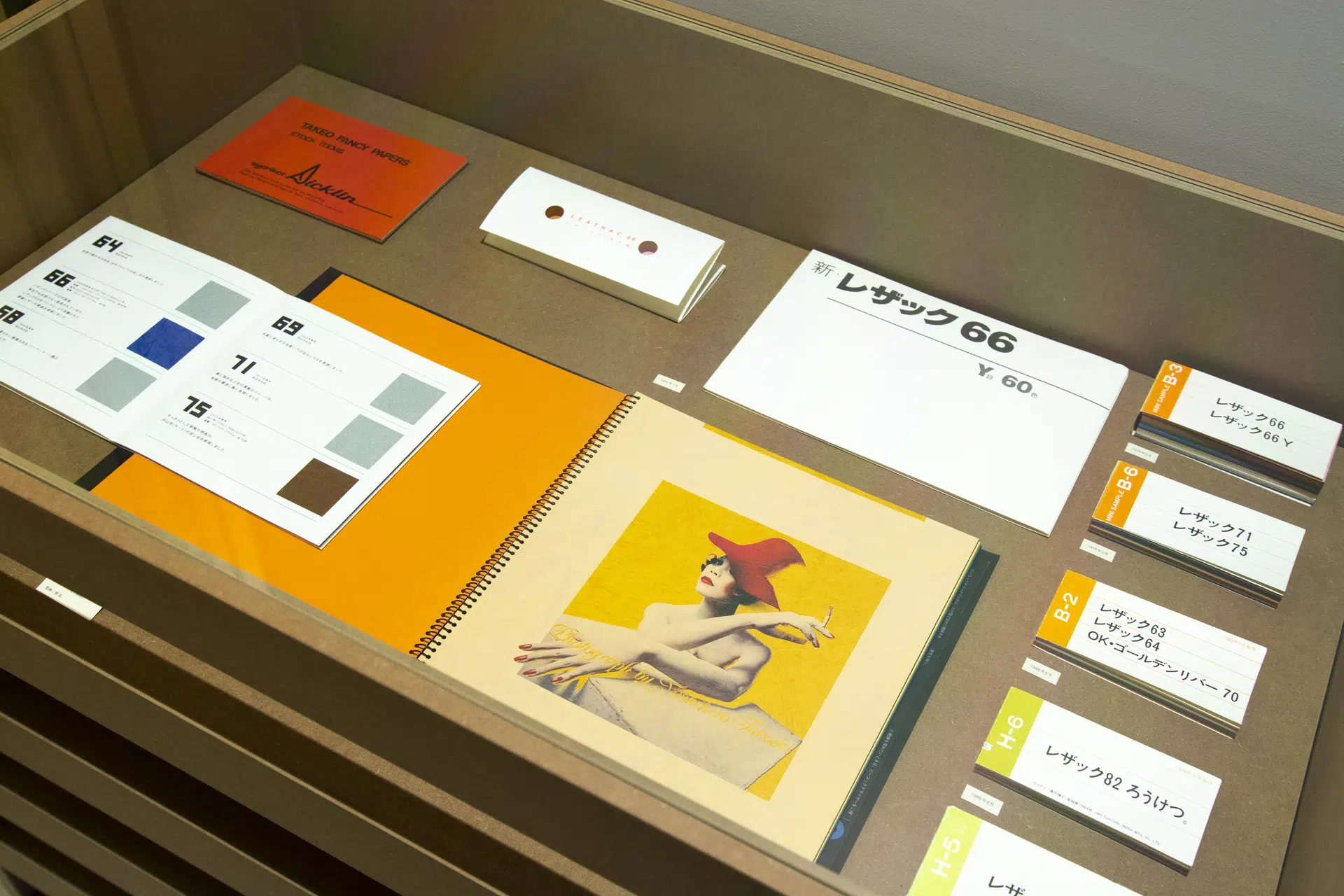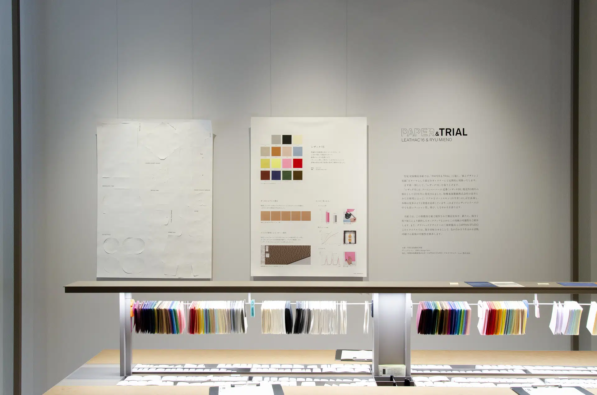 第一弾としてレザック16を取り上げ、製品見本や、抜きと織り加工により新たに制作したモックアップなどから