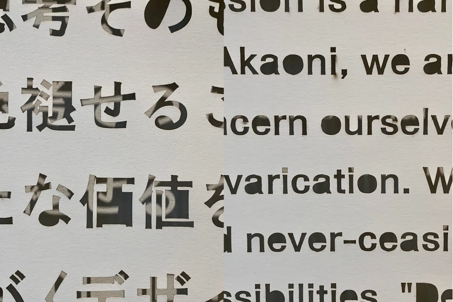 本展では、akaoniが手掛けた「みちのおくの芸術祭 山形ビエンナーレ」に関わるデザインや、