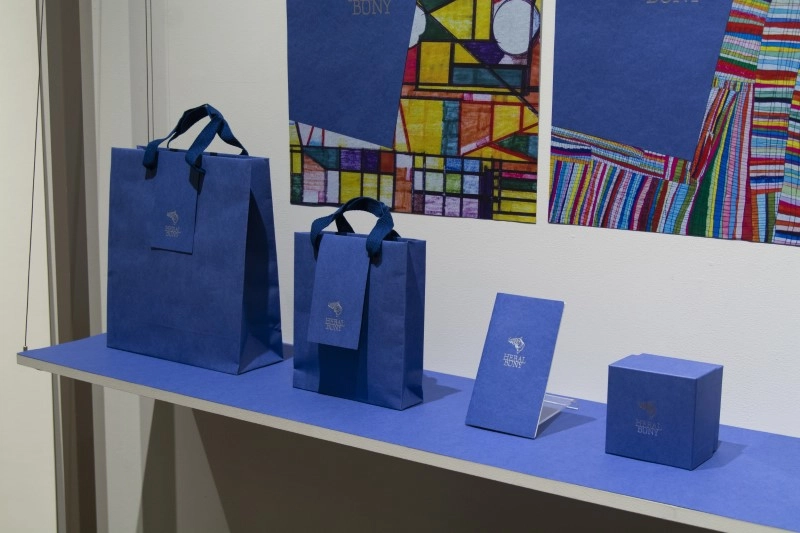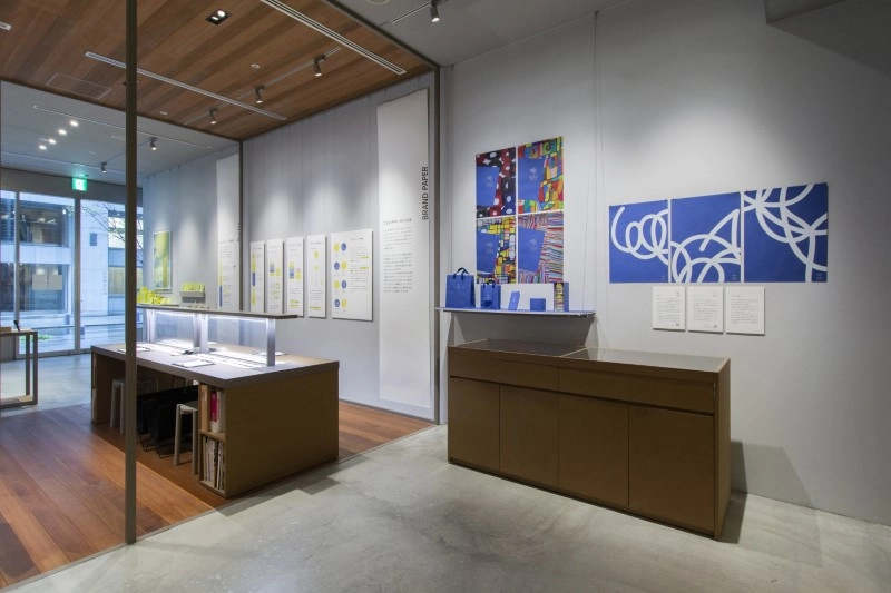 《ビオトープGA-FS マゼランブルー》を「ブランドペーパー」と位置づけ、 パッケージやショッパーなどのブランドツールに展開しています。