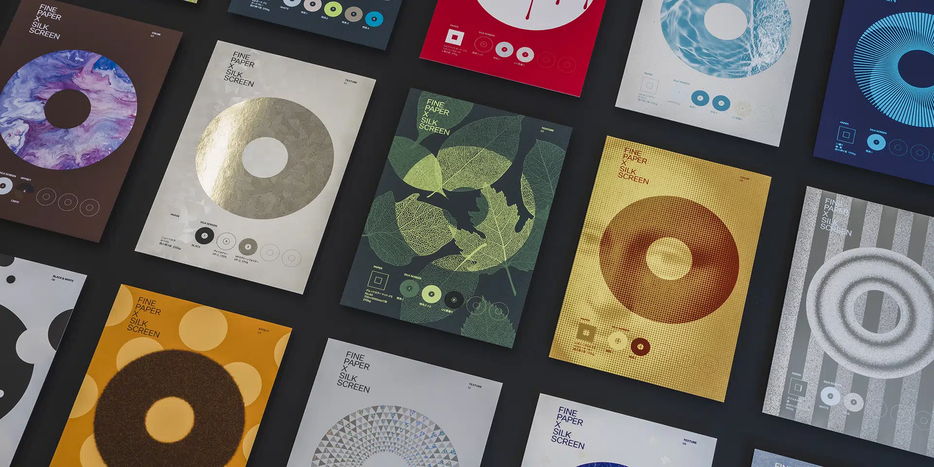 そしてデザインによる表現を掛け合わせて制作した、『ファインペーパー×シルクスクリーン見本帳』を展示いたします。