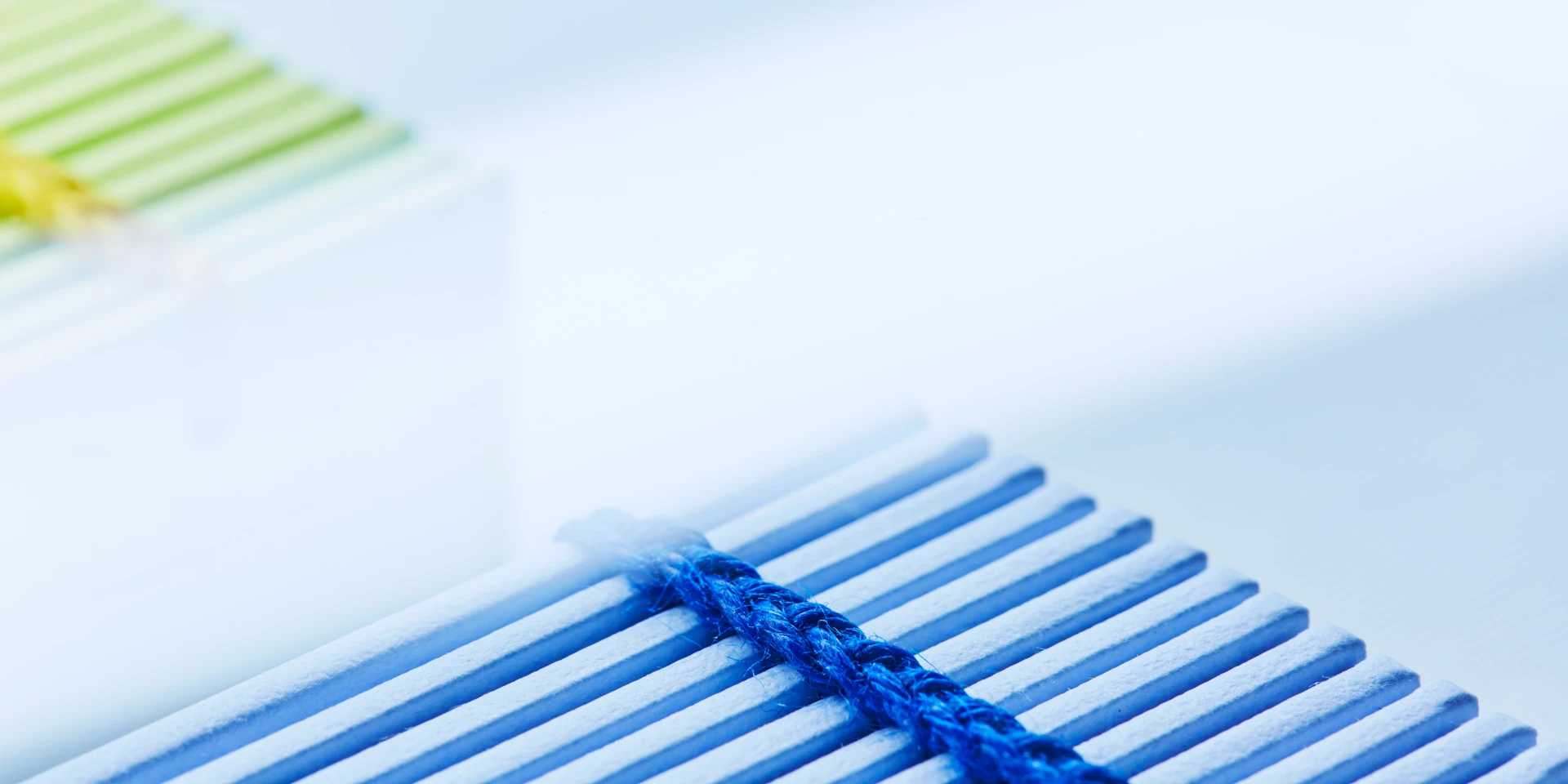 (続き)本にぴったりの大きさの穴が壁にあいていて、その穴のためだけにつくられた本を置く。そのことによって実際に本がモノとして存在するボリュームを感じられると思うんです。紙が折られ、折丁になって積み重なることで、紙はもう本に見えてくる。そのいちばん象徴的な部分が背です。エジプトの古い製本技法であるコプティック製本のような編み目が見える綴じ。僕はこのかがり方が結構好きなんです。リアルに編んでいるという感じで、背の印象が急に味わい深くなるんですね。綴じというのは本の完成形からみれば一部でしかありませんが、改めてみると表情があっておもしろい。このシリーズでは、チップボールをサガンGAで包み、蝋引きした麻糸で綴じています。