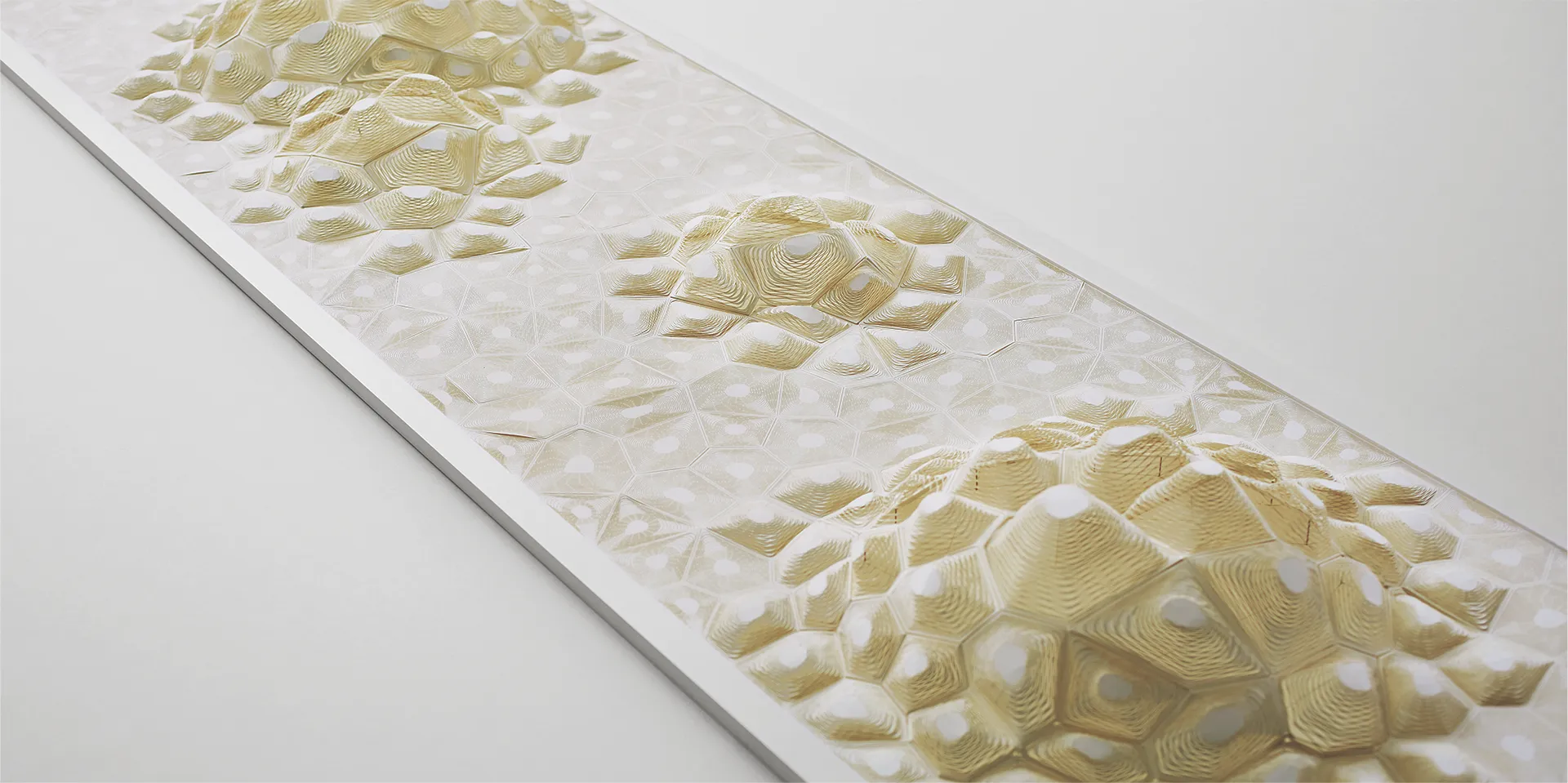 立体になっているのがポイントですよね。同じ色でも光と陰と色が混ざり合うことで変化していく感じ。試作はたくさんされたんですか?