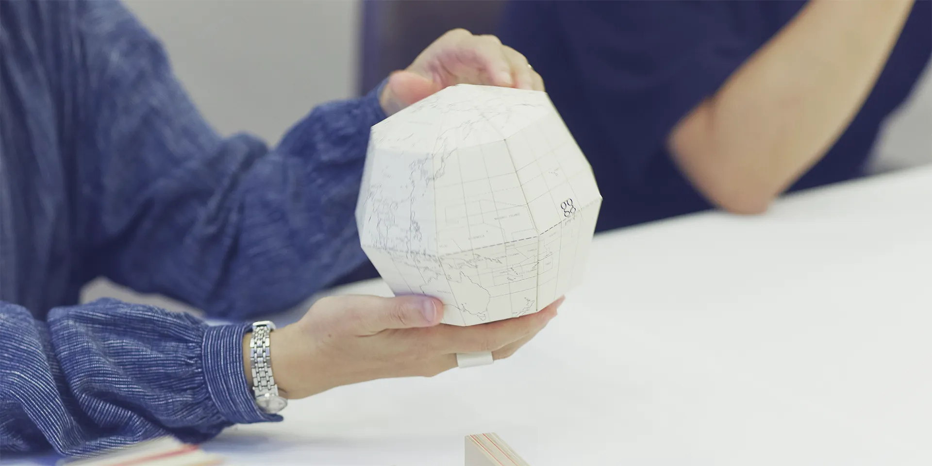 - 既存の価値観が揺らぐことで、それまで見えなかったことに気づけるようになりますよね。グラフィックのデザイナーをやっていると、どうしても完成品としての紙のことだけを考えがちですが、その手前には製紙工場があって、木材があって、森がある。そこまで視野を広げると、紙を使う以前のステップに対しても何かアクションできるんじゃないかと思うことがあります。私たちが「geografia」という地球儀をつくったときにも、「地球って丸いんだ」ということに改めて気がつきました。天気図のような平面地図ではどうしても地域が分断されがちですが、丸い地球儀で見るとアマゾンや北極がひとつながりにあることが実感しやすくなる。分かっているようで感じられていないことが実はまだたくさんあるのに、デザイナーって意外と視野が狭くなっていたりします。竹村さんとお話しているとそういう部分の窓がパカパカと開いていく感覚があるんです。