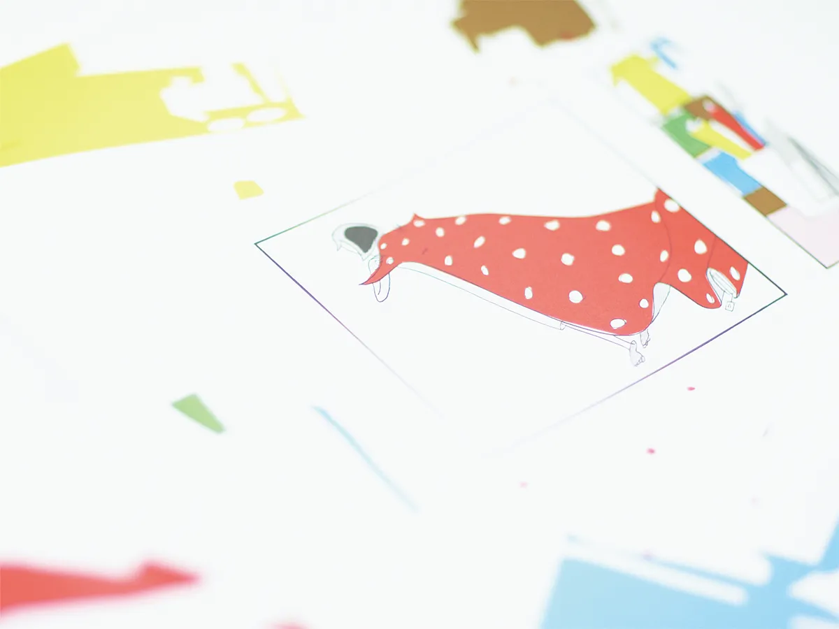 - もちろん最終の原画は、ちゃんと原寸で描かれたとても綺麗なものでした。だから「この発色感はちょっと生かしたいな」と思ったんですね。しかし黒の表現は難しかったですよ。