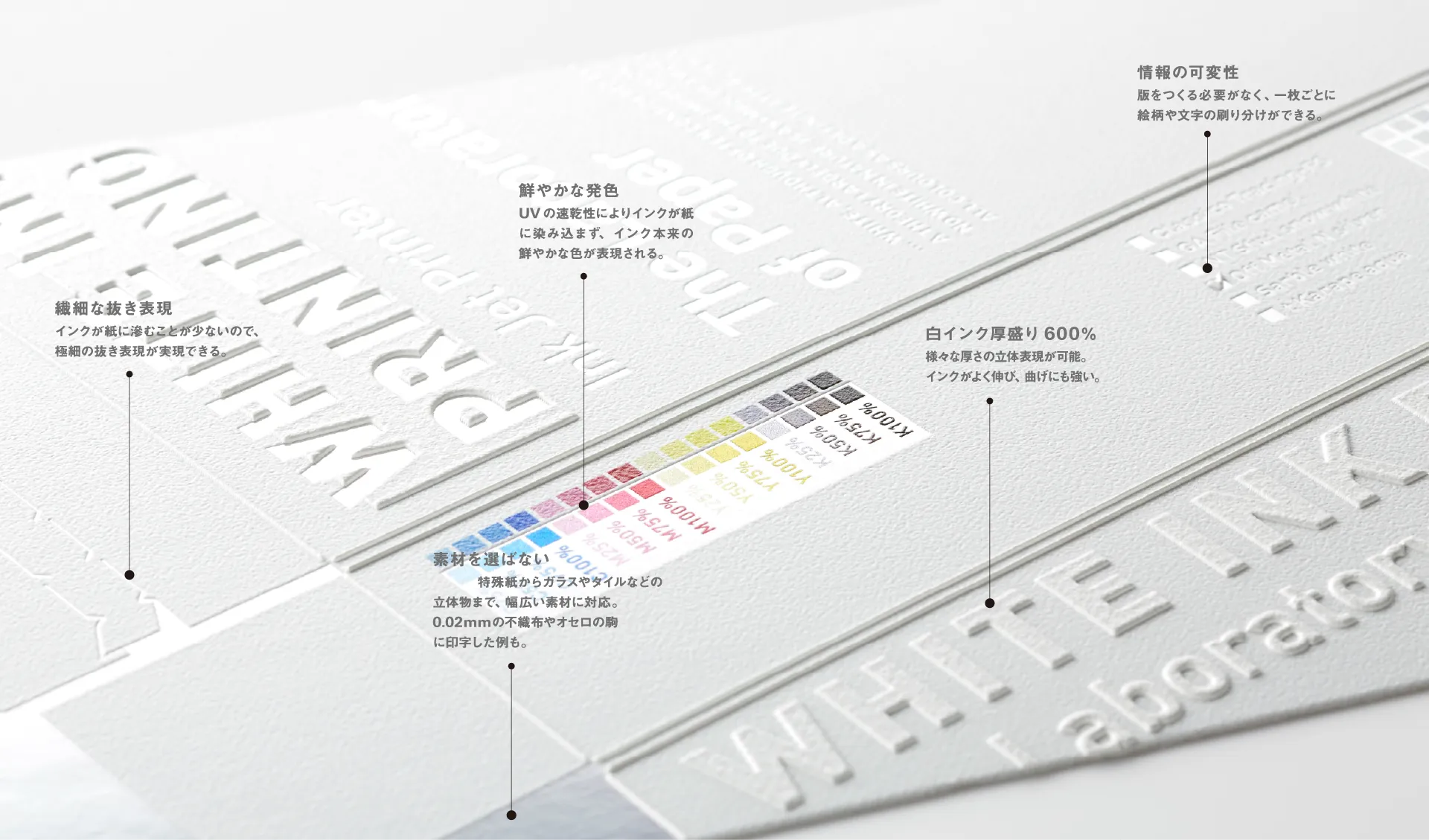 ホワイトインクを厚く盛ることもできます。その他にも、