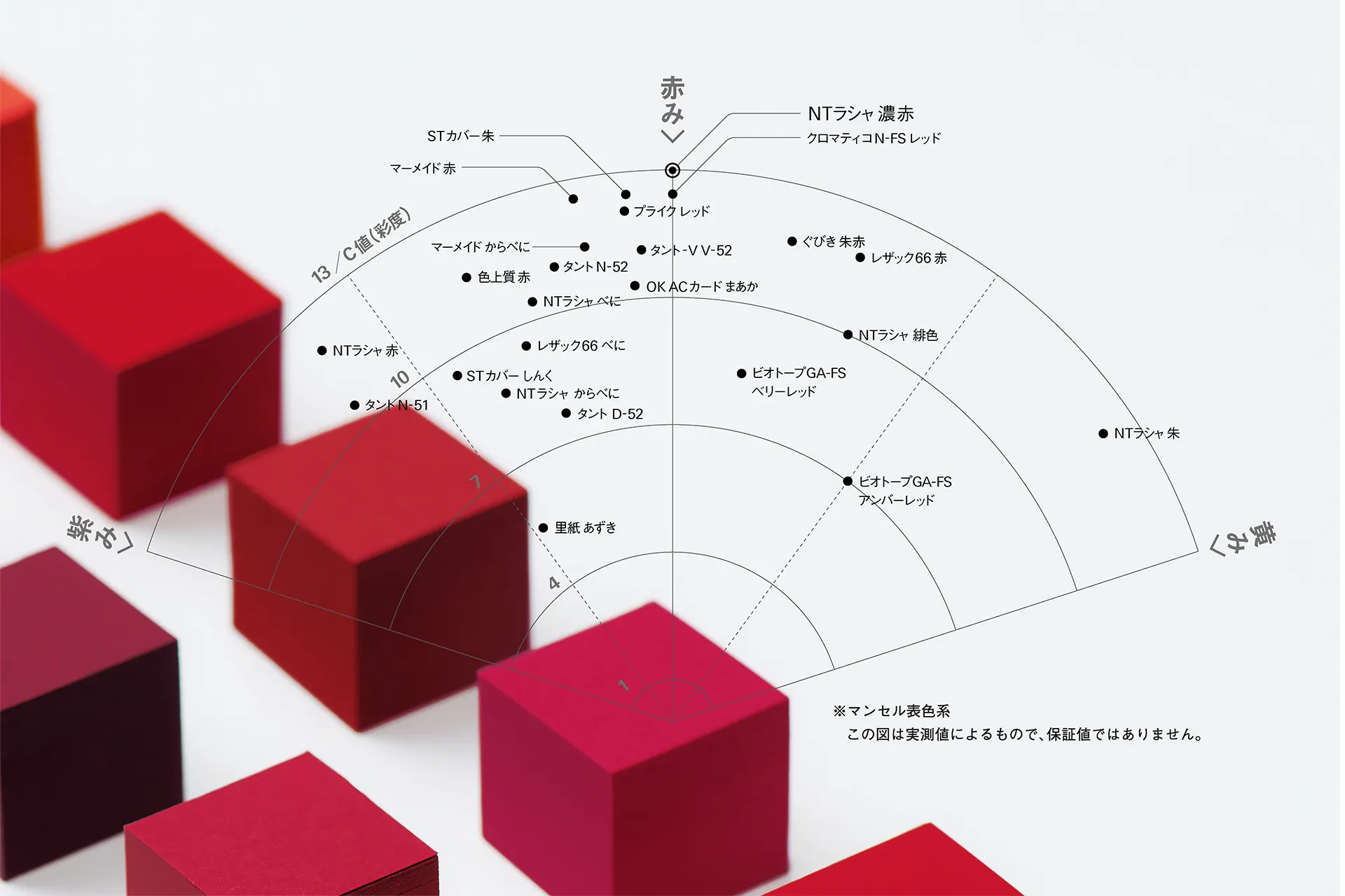 今回は、濃赤をはじめ様々な赤の位置関係をマッピングしてみました。