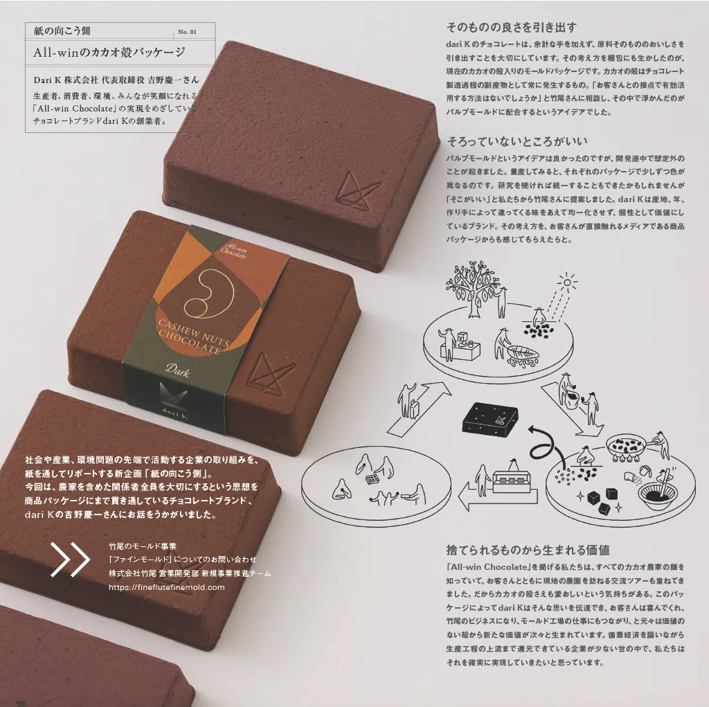 - All-winのカカオ殻パッケージ──Dari K株式会社 代表取締役 吉野慶一さん
