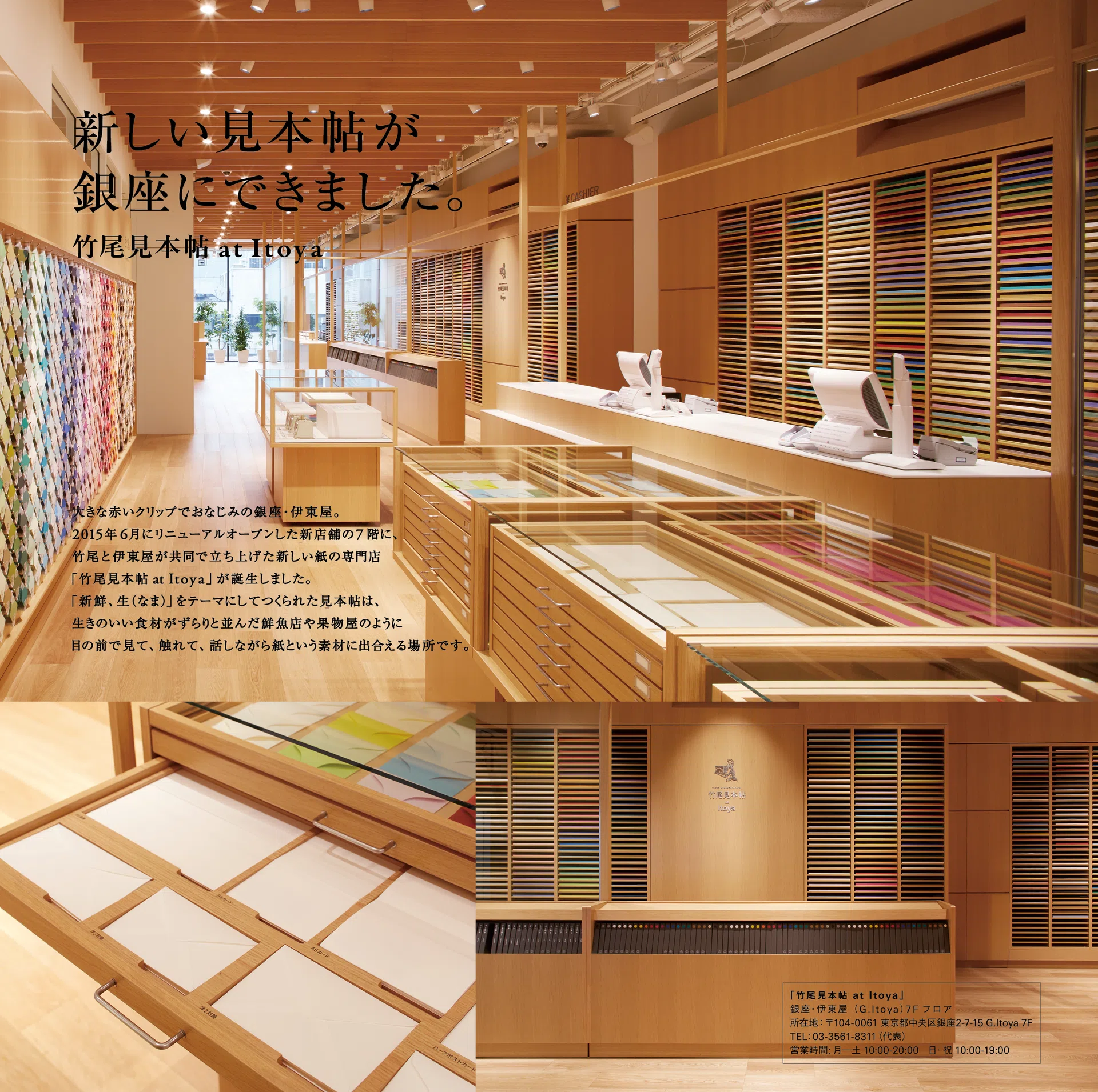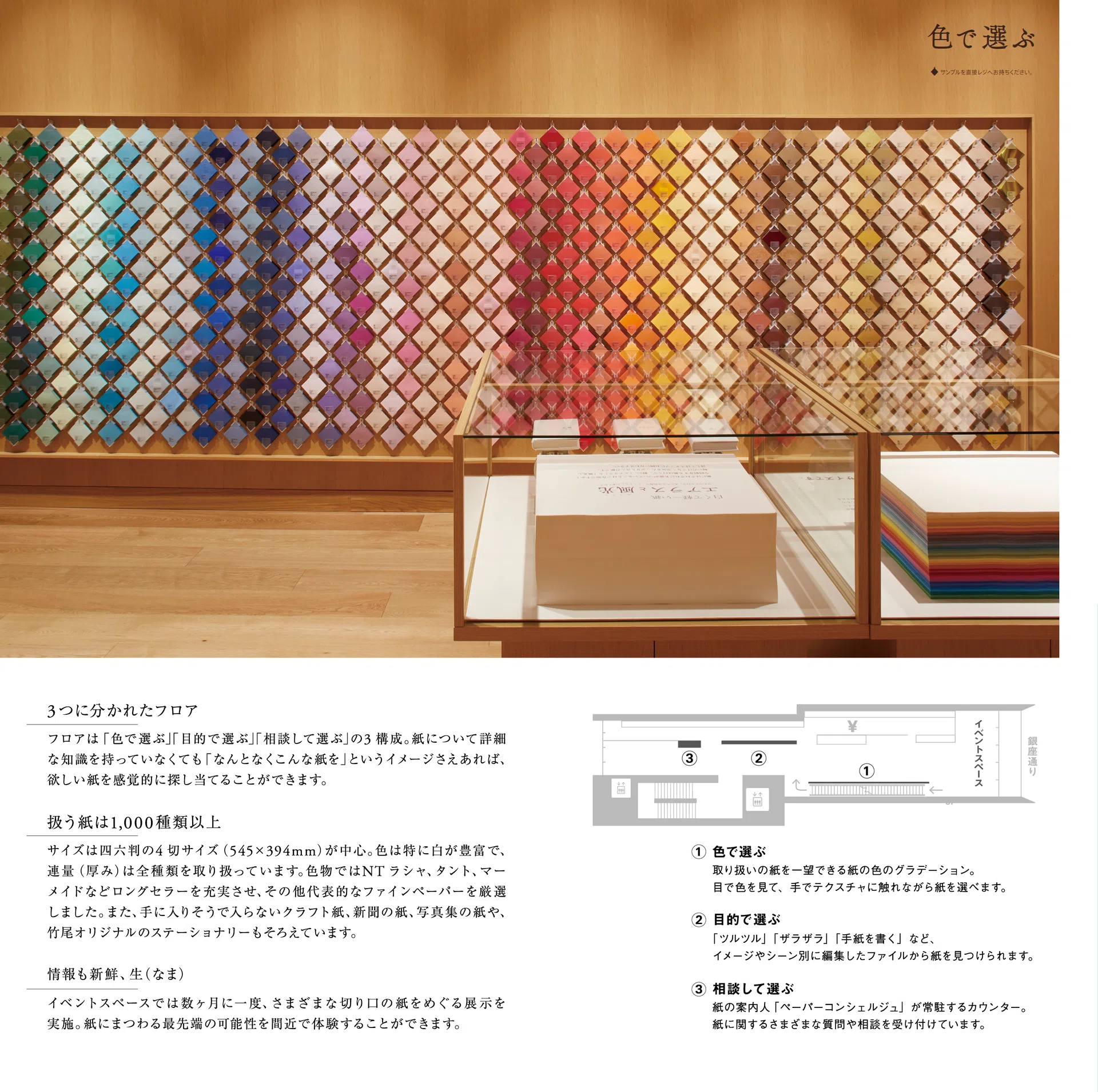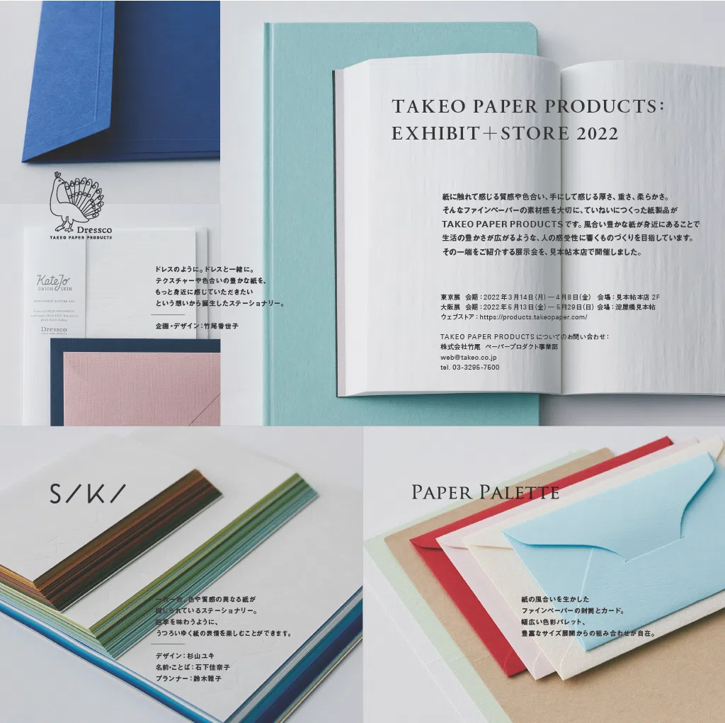 見本帖本店や竹尾ペーパーショウなどの催し物の情報、新製品情報など、