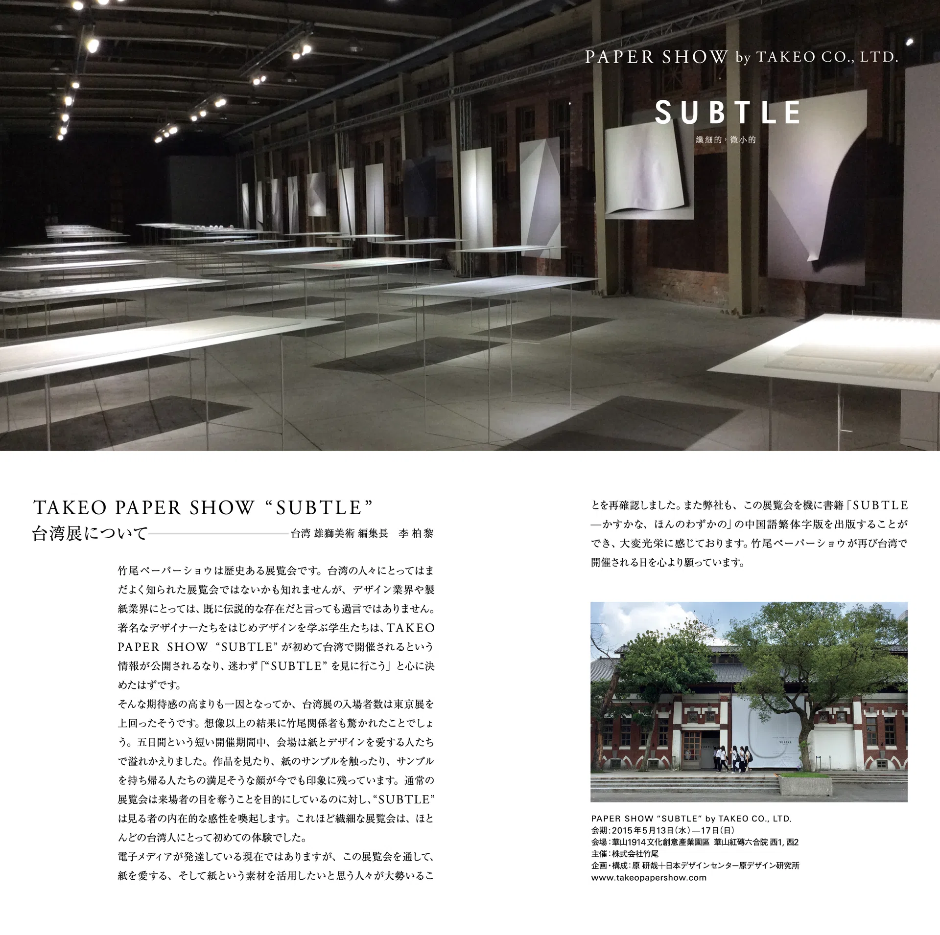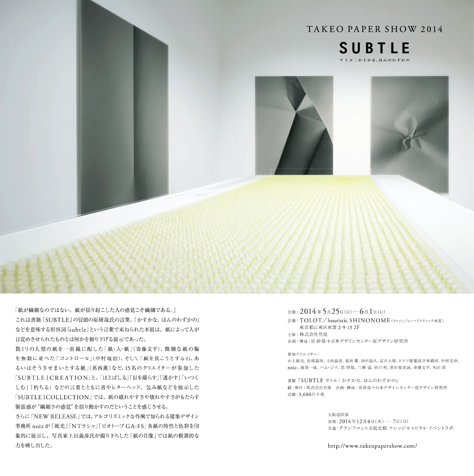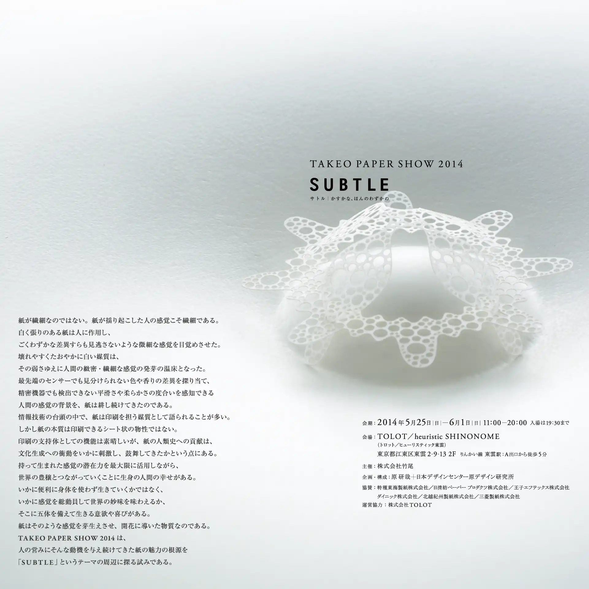見本帖本店や竹尾ペーパーショウなどの催し物の情報、新製品情報など、