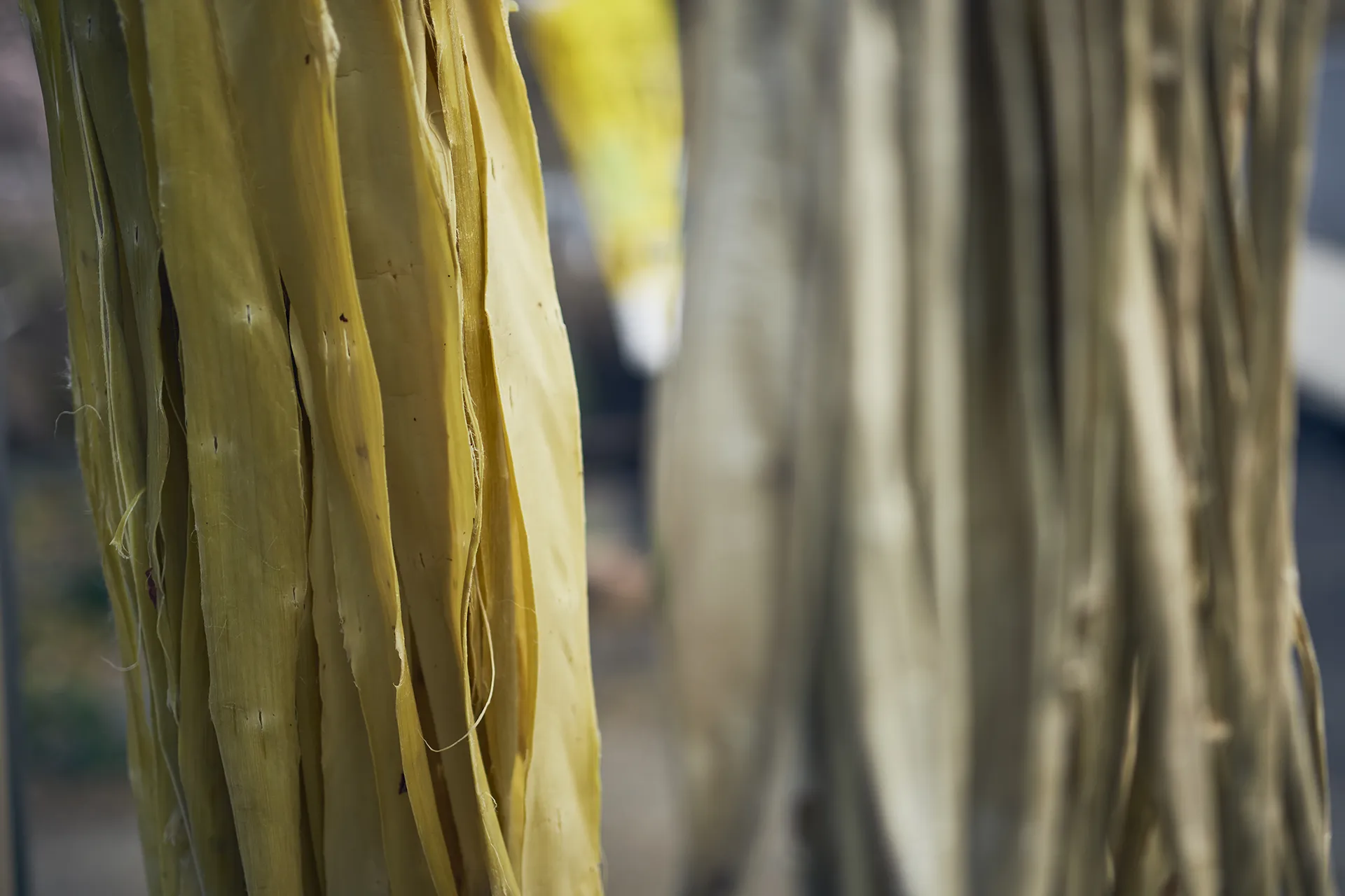小包丁の刃先を流れるように滑っていく楮の皮。