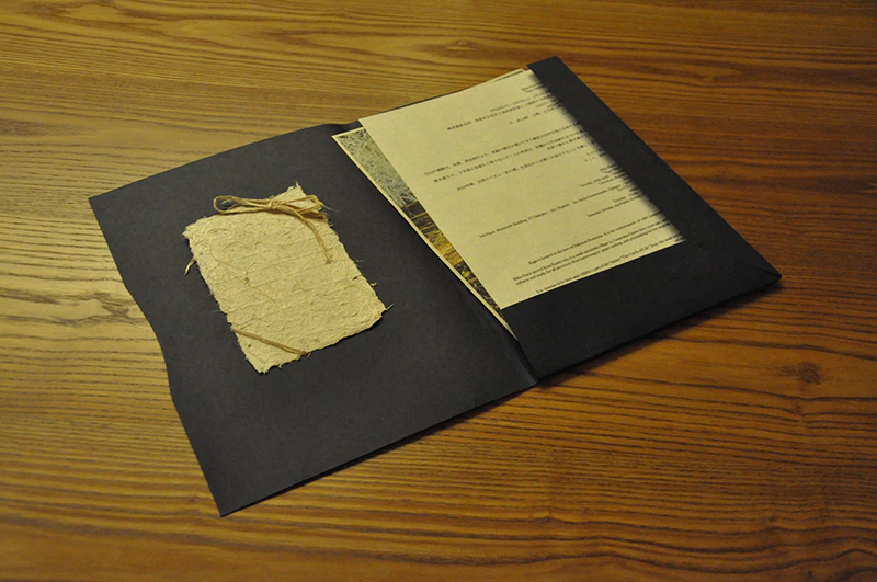 環境に良い森林認証紙である事と、生成りの和紙を美しく見せる気品がある色が決め手となりました。(堀江美佳さん)