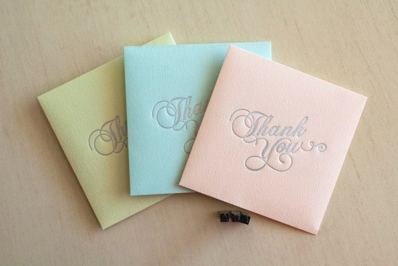 活版印刷で「Thank you」と印刷されたポチ袋に、漢字もしくはひらがなの活字にて名入れ活版印刷するワークショップ。