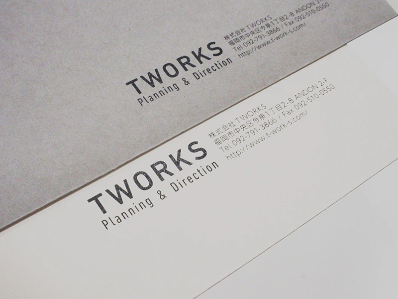 シンプルなデザインにしたかったので、紙質にはこだわって作ろうと思い、選ばせて頂きました。請求書等で使う洋長3封筒は落ち着いたグレー、書類などを入れる角2封筒は明るい白を選びました。(株式会社TWORKS 百田直哉さん)