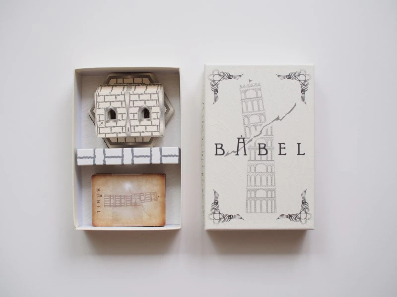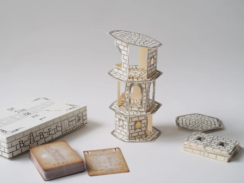 「BABEL」は、ふぞろいのカードを積み上げて塔を完成させるバランスゲームです。