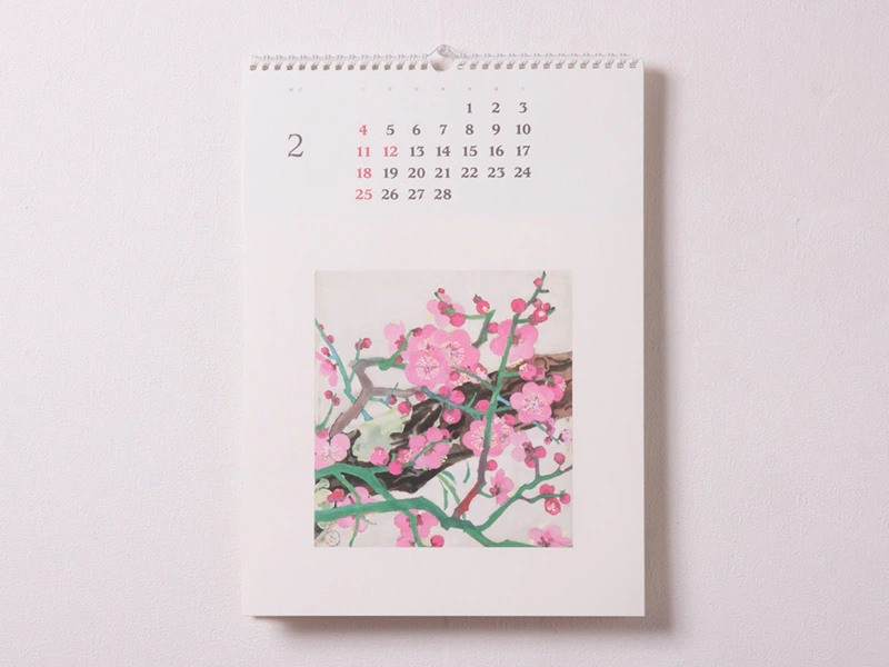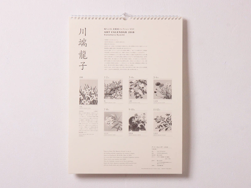 婦人之友社創業90周年記念製作から、今年で25回目の製作になります。『婦人之友』の表紙を飾ってきた日本画家の作品をカレンダーとするために、再現性が良く風合いのあるDXダイヤペークを初回に選びました。その後、残念ながら廃番になりましたため、その流れを汲むダイヤペークを使用することになりました。(婦人之友社)
