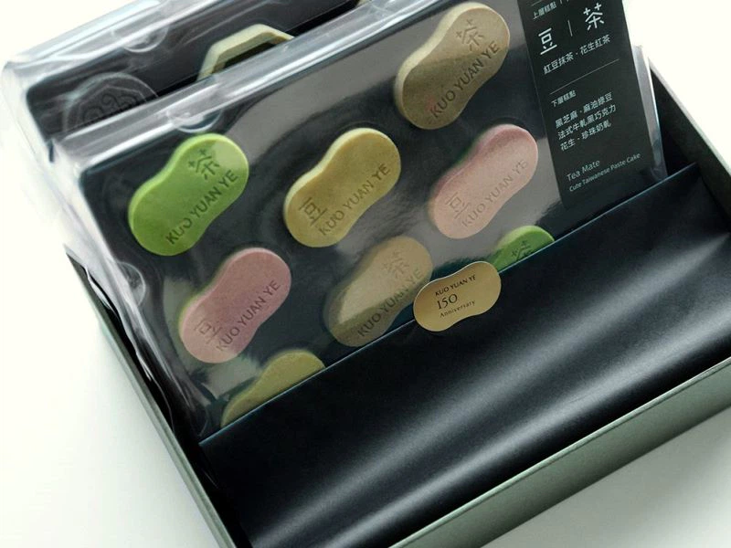 由於這個產品是為台灣知名糕點品牌「郭元益」所設計的150週年紀念包裝,我希望消費者拿到這份產品時,能透過溫潤、文化感強的紙張的選擇、印刷工法以及盒子厚實的加工製作,感覺到一份精緻的心意。