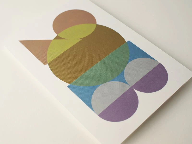 デザインは、年号である「2018」を落ち着いた上品な色合いのタイポグラフィで表現しています。通常、シルバーインキには色を重ね刷りすることは難しいのですが、特殊なシルバーインキを用いてシルバーにプロセス3Cを重ねることで、多様なメタリックカラーを表現しています。またメタリック感を強調し、汚れ防止のために絵柄面の印刷部分のみ超光沢ニスを重ねています。(株式会社竹尾 企画部)