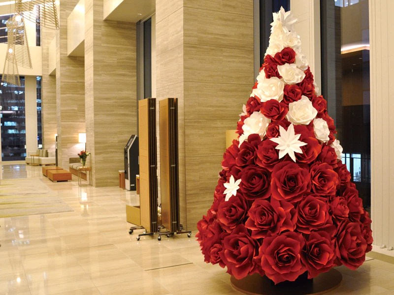 ペーパークラフト作家やまもとえみこさんに、名古屋JRゲートタワーホテルフロント(ゲートタワー15階)で展示中のクリスマスツリーをご紹介いただきました。