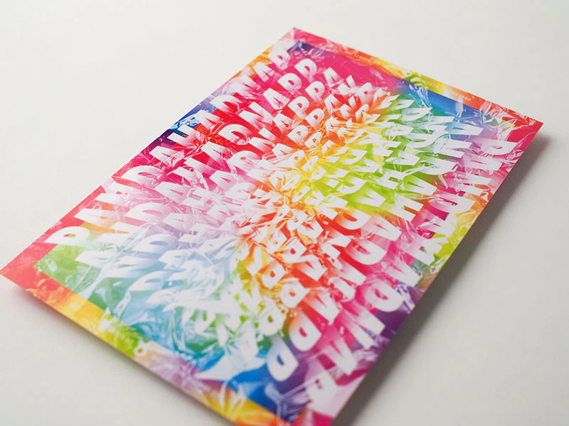光沢感があってデザインの格を上げてくれる紙を、ということでご紹介いただいたのがインバーコートです。多色で変化の強いグラデーションが瑞々しく、かつ地の黄味も相まって、高彩度ながら優しい印象に仕上がりました。(株式会社tote 谷井さん)