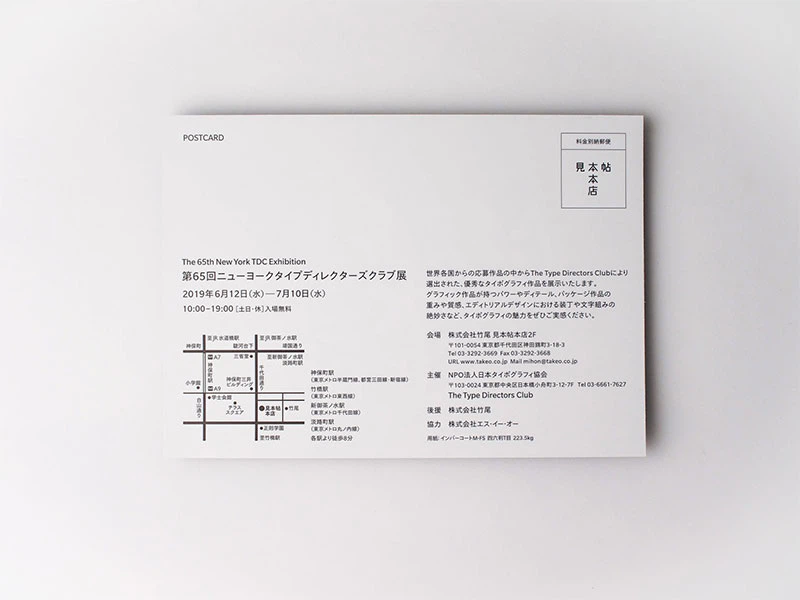 見本帖本店2Fで開催している「第65回ニューヨークタイプディレクターズクラブ」展 の案内状をご紹介いたします。