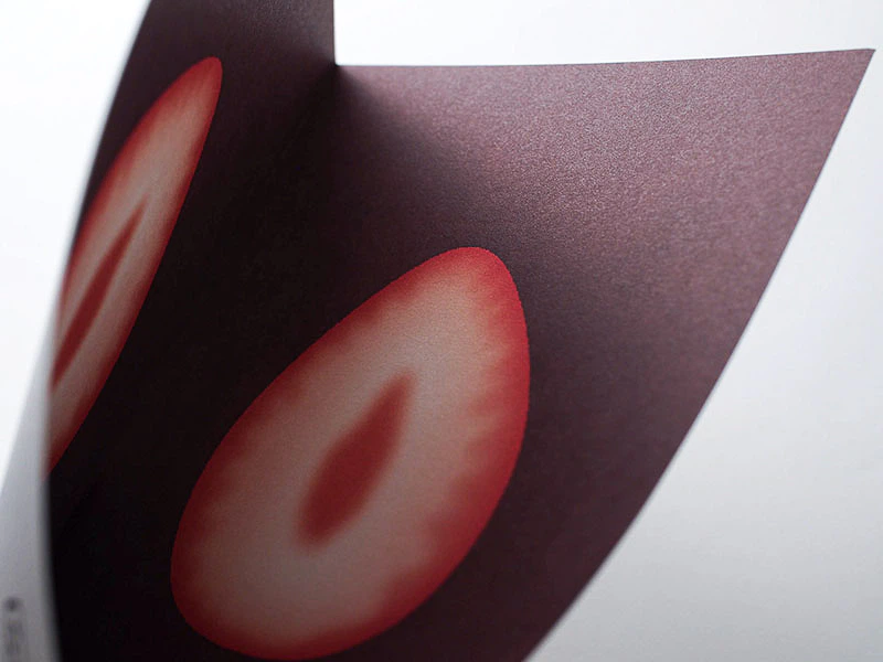 ファイルを3種の大福に見立てた作品です。大福の粉っぽさや温かみをNTラシャの混じり気のない白と紙の質感で表現しました。ファイルを開くと中にあんこがぎっしり詰まっています。ぜひ、手にとってご覧ください。(プランテーション 原田さん、田中さん)
