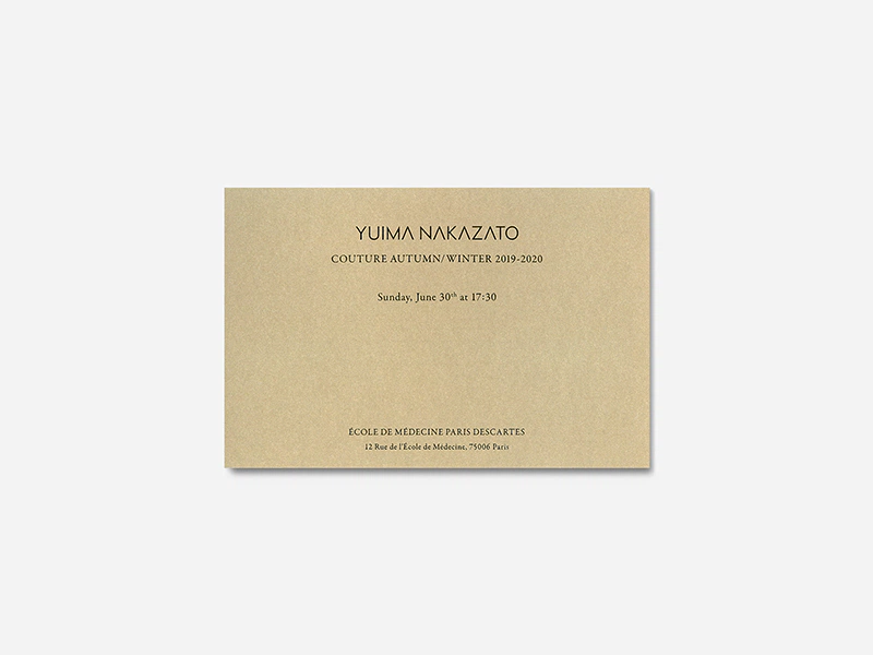 YUIMA NAKAZATOのインビテーションと紙製ファイル