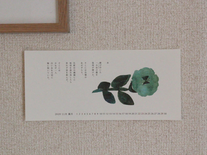 カレンダーの販売だけでなく、カレンダーに掲載したイラストの原画や藤井千晶によるテキスタイル作品を展示します。また、各会場にてカレンダーの物語「月と糸」を音楽に乗せて朗読します。 朗読会は予約制です。予約のお問合せは各会場へお願い致します。