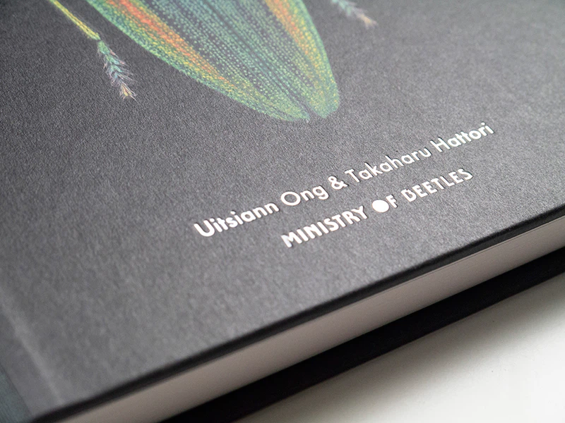 本のテーマが金属のような光沢を持つタマムシであった為、箔押しによる金属光沢のあるタイトル文字がカバーデザインの重要なポイントになりました。