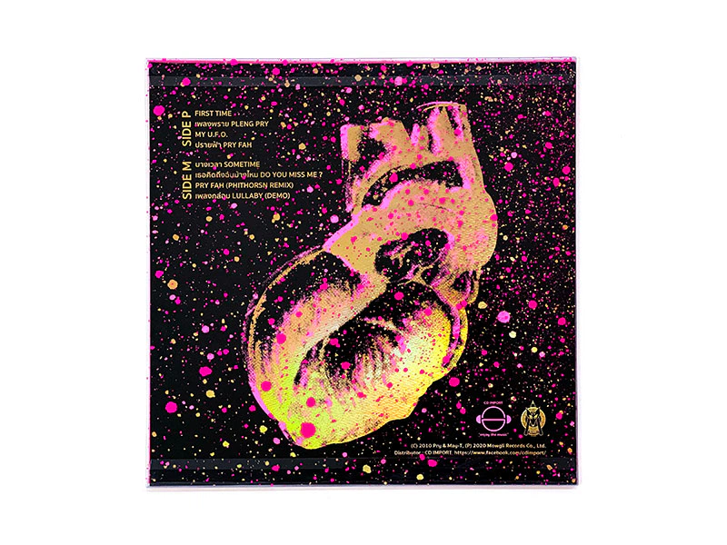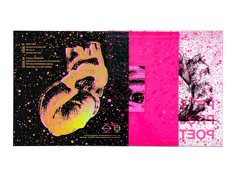 ความงามของดนตรีกับความงามของปกเป็นสิ่งสำคัญ เราใช้ประสาทสัมผัสทั้งทางตา หู และมือไปพร้อมกัน (หากร้องเพลงตามไปด้วยก็จะได้ใช้ปาก) . . . ดังนั้นการที่เบลได้รับโอกาสในการออกแบบ packaging ชุดนี้เลยอยากให้ผู้ฟังได้รับแต่ละประสาทสัมผัสที่เบลพยายามออกแบบไว้ โดยเลือกใช้วัสดุที่ส่งผลต่อมิติทางการมองและการสัมผัสที่หลากหลาย ไม่ว่าจะเป็น PVC jacket เนื้อมันเงา มองทะลุได้จากทุกด้าน และการเลือกใช้กระดาษ Mermaid Neo Pink ในทุกส่วนที่เป็นกระดาษของงาน ความพิเศษของกระดาษสีชมพูสะท้อนแสงย้อมถึงเยื่อ พื้นผิวด้าน เนื้อฟู คล้ายกระดาษสำหรับวาดรูปสร้างความประทับใจให้กับเบลตั้งแต่ครั้งแรกที่ได้เห็นและได้สัมผัส และกระดาษตัวนี้ยังเหมาะกับแนวความคิดในการออกแบบบรรจุภัณฑ์สำหรับโปรเจคนี้ (คำสำคัญของอัลบัมนี้คือ P ที่มาจากคำว่า Pink)