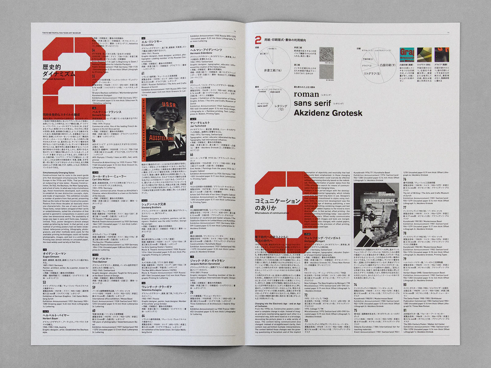 この展覧会のタブロイドスタイルのハンドアウトは、作品リストとして機能しています。3つのチャプターの概要や作家の略歴、1点1点のポスターに含まれる研究成果、展示マップを掲載し、美術館でポスター研究の熱が静かに爆発している事件性を持たせたいと思いました。タブロイドという形式から、当然ながら「タブロ」が選ばれています。(長澤昌彦さん)