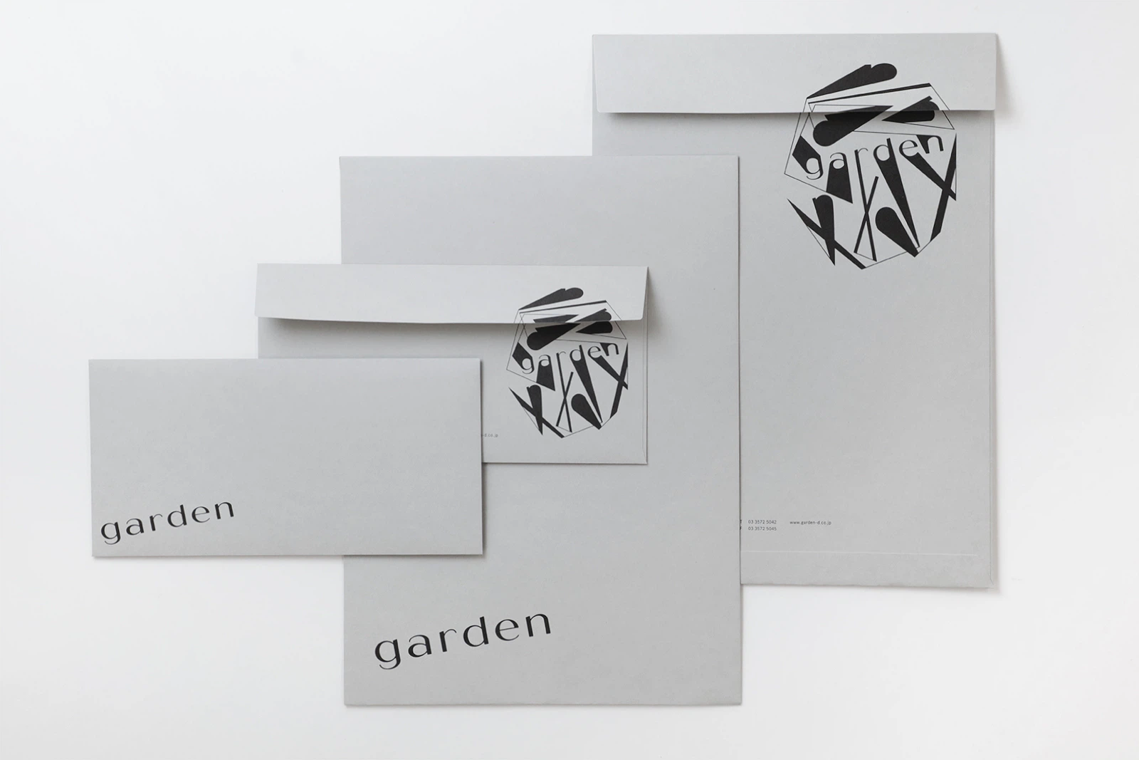 今回の会社案内を製作するにあたり、名前の「garden」にふさわしい、暖かい手触りで自然な色味を感じるものが良いと思っていました。また表紙は箔押しと決めていましたので、箔押しが美しく映える紙を選んでいきました。見本帳を見ながら探していきビオトープGA-FSが一番しっくりきたのですが、色の濃度もしっかりしており華やかすぎないのが気に入って、最終的には8色使うことになりました。封筒も同じようにビオトープGA-FSのストーングレーを使用しました。(株式会社garden 新村則人さん)