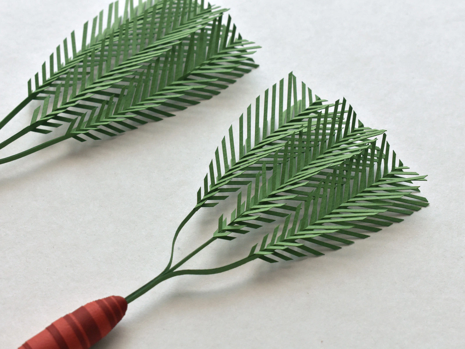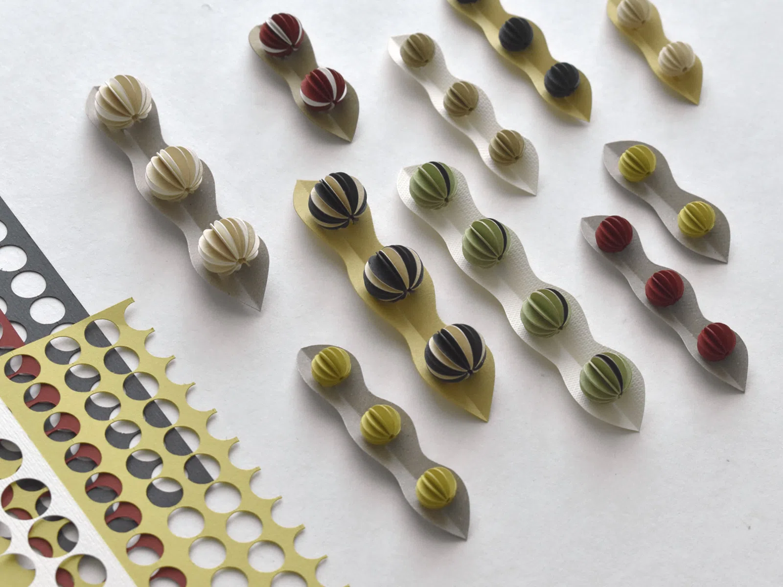 手作業による切り、折り、貼り、編み込み、カール、彩色