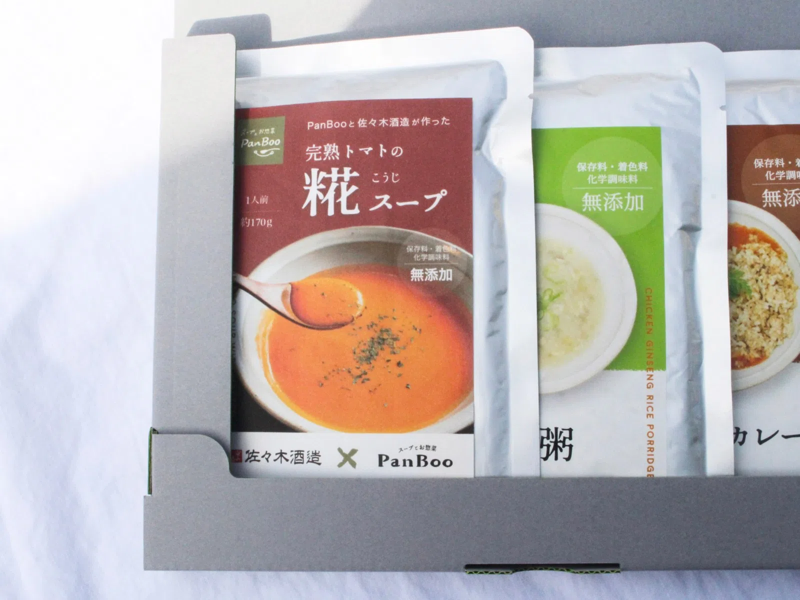 京都の嵐山にあるスープとお惣菜専門店の、ギフト用ボックスについておしえていただきました。