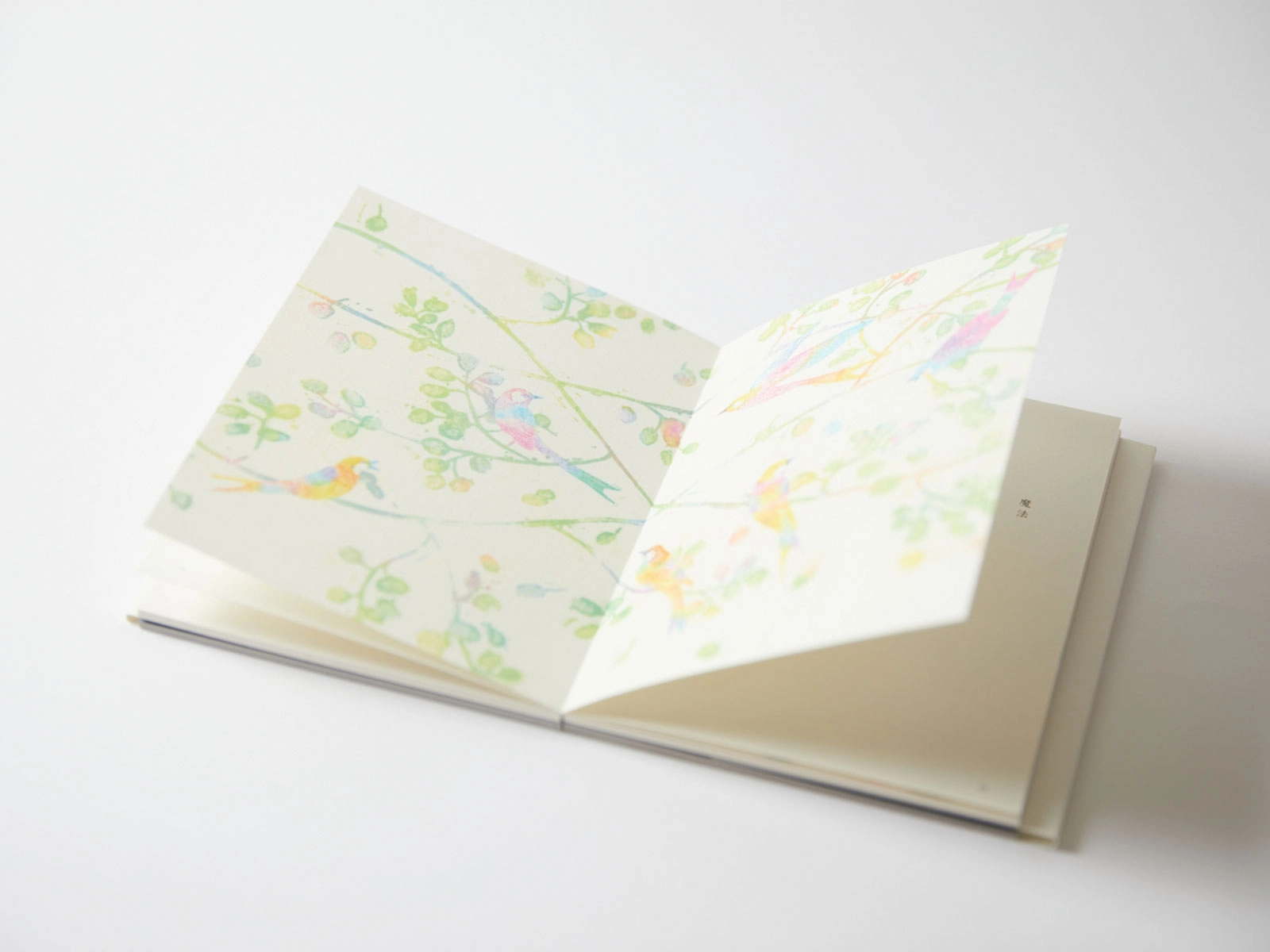 製本会社の美篶堂さんと一緒に制作した絵本『うさぎがきいたおと』でアラベール-FSを使用したので、今回も同じ紙を使いたいと考えました。アラベール-FSのやさしい風合いが、繊細な色合いの木版画をより引き立たせていると思います。