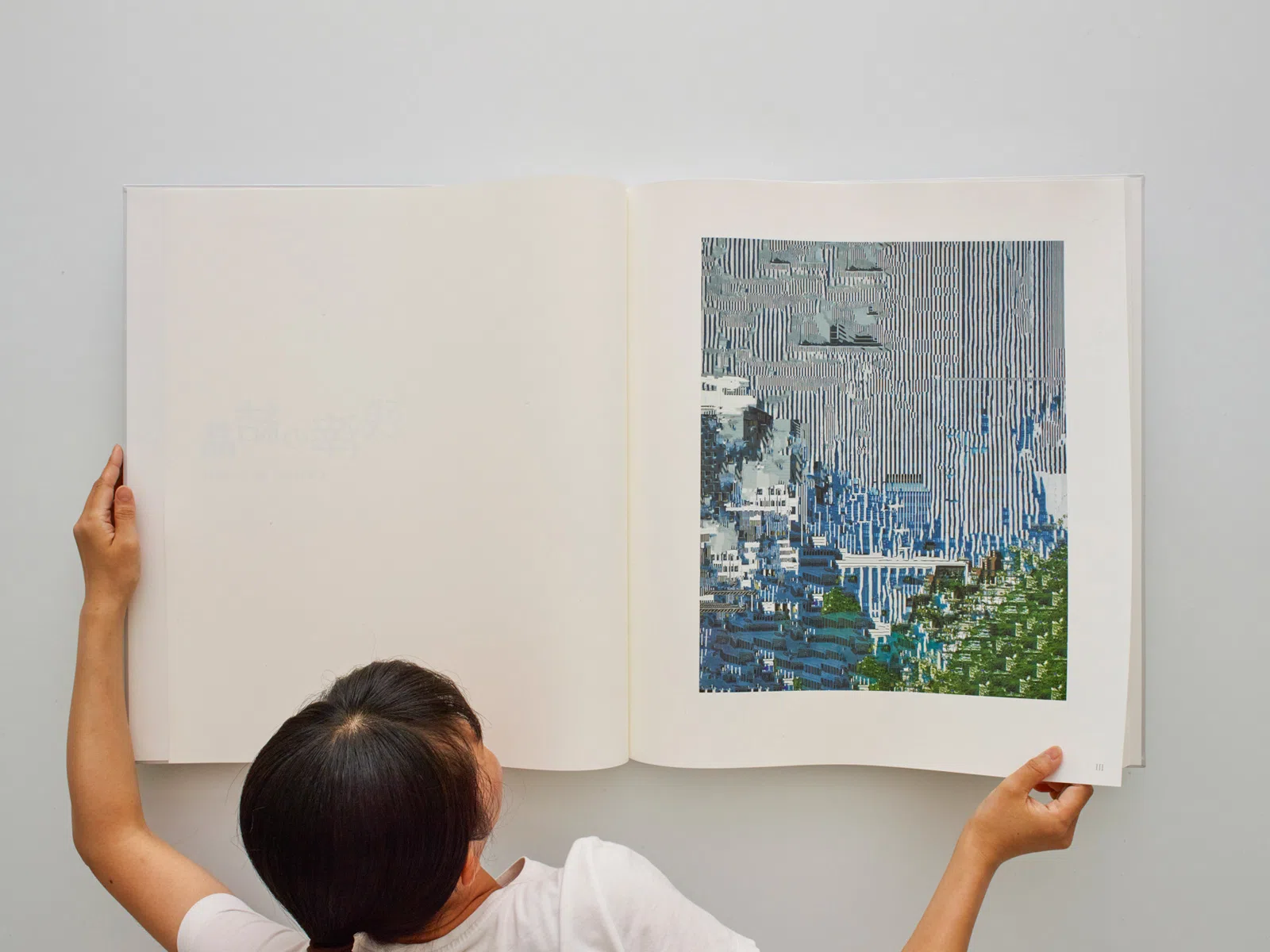 超大型写真集『残滓の結晶』は高速インクジェットプリンタ「Jet Press」によるデジタル印刷で、実験的に作成されました。掲載される写真作品が緻密な模様を描いているため大きなサイズで表現する必要があり、かつ紙の表面に滑らかさと色の表現力が必要でしたが、一般の印刷用紙が使え、ヤレが出ないため、色校正、本番で使用する用紙量が最低限で済むというJet Pressの特性を活かすことで、これまでオフセット印刷では予算の都合上、使うことができなかった高級紙を使うことができました。