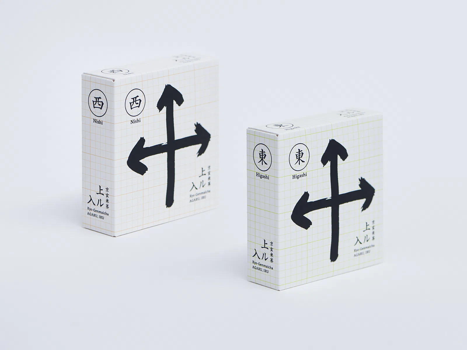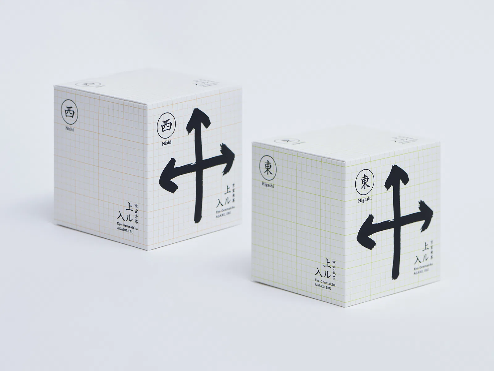 京都、宇治田原製茶場から誕生した新しい玄米茶ブランド「京玄米茶 上ル入ル」のパッケージです。