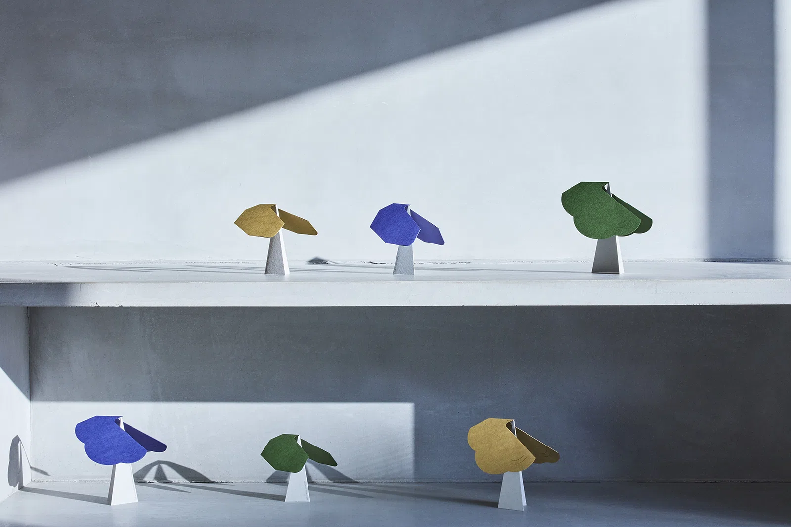 今年も良いこともそうでないことも、色々なすったもんだもありました。そんな中、デスク周りに飾ることで、ふと微笑ましくなるようなグリーティングカードをつくりたいと思いデザインしました。メッセージカード部分を組み立てると三角形の台紙になります。その先端に鳥のくちばしを乗せると、ゆらゆらとバランスをとりながら揺らぎます。日本の伝統的な玩具である「やじろべえ」のグリーティングカードです。翼を広げた鳥が幸せを運んできてくれる、という願いも込めてデザインしました。