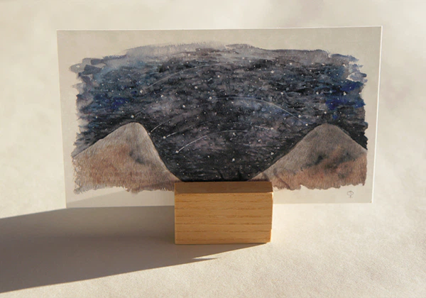 今回の作品には松井美藝堂の100周年という"重たさ"を出したかったので、普段使っている紙よりも少し経年によって色が付いた感じを出したく「新局紙 古染」を使いました。表面がフラットではなく少しボコボコ調子が付いているのも雰囲気があって好きです。(Rockin’Jelly Beanさん)