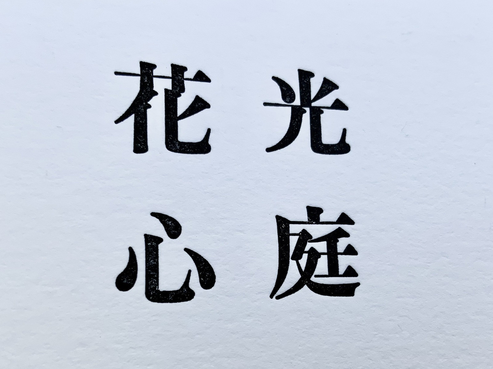 そうした漢字の視覚詩を、現在ではとても貴重なものとなっている「初号」の活字で刷る紙として、今回は活版との相性に定評がある「ニーナコットン」を選んでみました。「スノーホワイト」と名づけられた余白に雪のような明るさを醸す紙の色味にも心惹かれています。実際にお手元でご覧いただける機会がありましたら幸いです。(星素子さん)