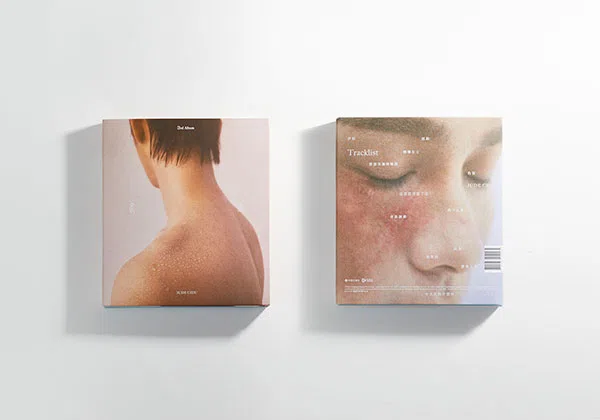 紙は名作「ヴァンヌーボ」と比較的新しい紙「CLOUD GRAY」ということで、「ヴァンヌーボV-FS」はその印刷適性の良さを活かして特色を2度刷りして台紙に反射させることで、光を表現し、台紙に使用した「CLOUD GRAY」は素材感の良さを活かしてシンプルに箔押しと、特色のシルバーで印刷しました。