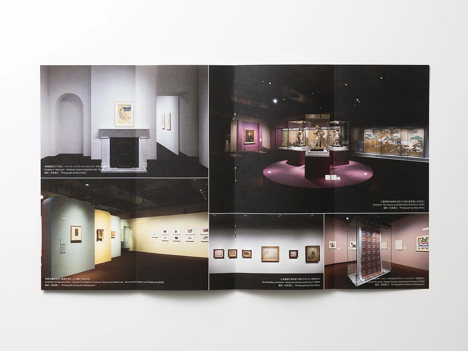 三菱一号館美術館の概要を紹介するパンフレット。美術館の象徴である赤レンガを想起させる冊子にしたいと思い、色味や質感から「ビオトープGA-FS アンバーレッド」を表紙に使用しました。本文は白すぎず、かつ印刷適性も高い「テイクGA-FS」を使用。表1にレンガのパターンを空押しすることでレンガらしさを強調し、冊子自体の大きさも実際に使われているレンガの胴面と合わせました。また表3にはスリットを入れ、毎年更新される展覧会ラインナップの紙を差し替えることで、無駄なく使っていただけるようにしています。(芝野健太さん)