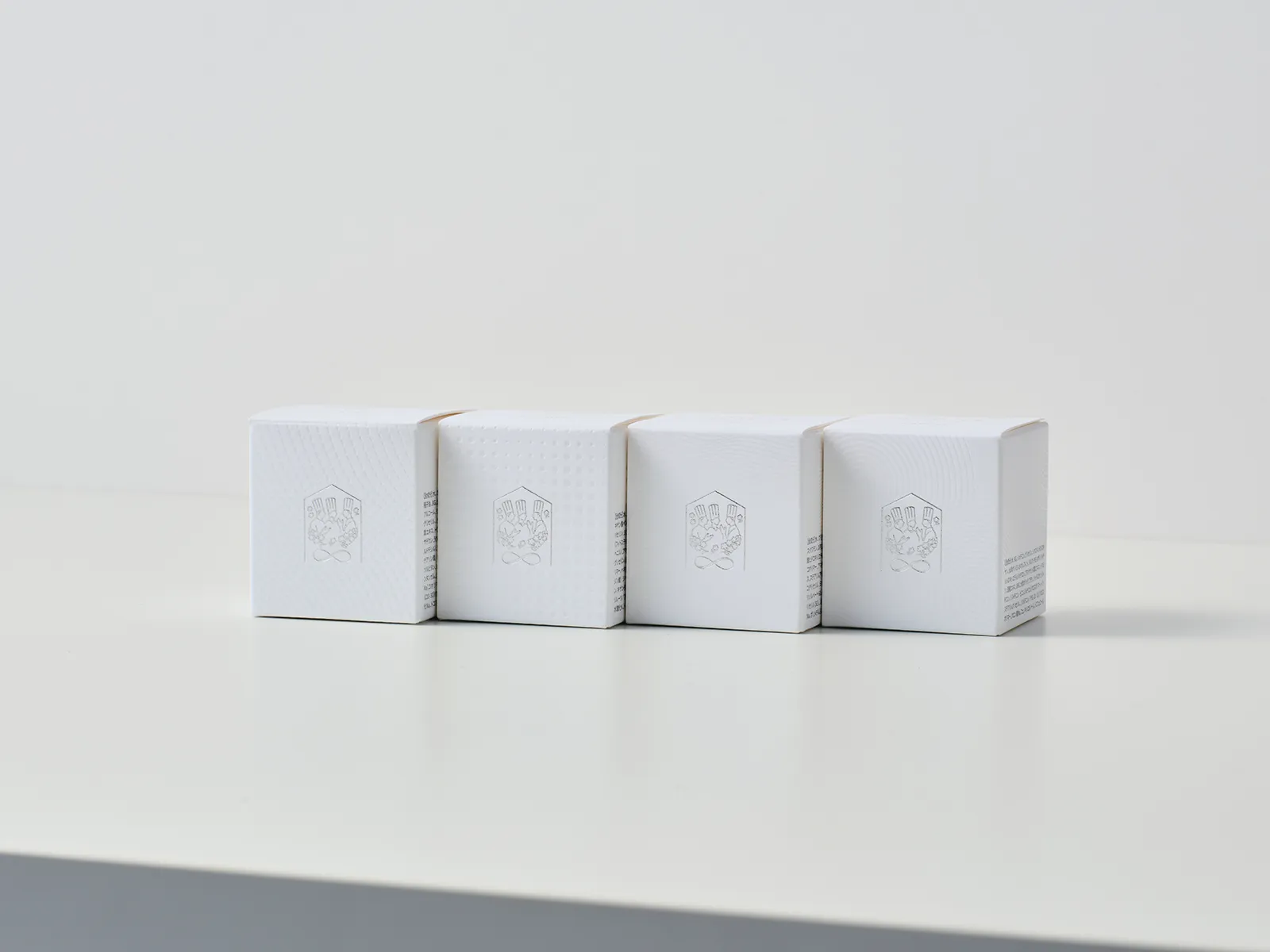 お客様の手が商品に触れた瞬間から、心地よさを感じていただきたいという想いを込め、パッケージの質感もスキンケア体験の一部としています。CHEF de BEAUTÉ のスキンケアは、テクスチャーと肌との親和性、そして肌のわずかな変化に気づく感覚を大切にしています。一見同じ白に見えるパッケージですが、クリア箔でそれぞれ異なる柄を施すことで、触れて初めてその違いに気づいていただけるようにしています。見た目だけでなく、触れる感覚からも美しさを仕立てる。「スノーブル-FS」は、五感を研ぎ澄ますスキンケア体験の始まりにふさわしいパッケージ素材です。(株式会社桃谷順天館 横田さん)
