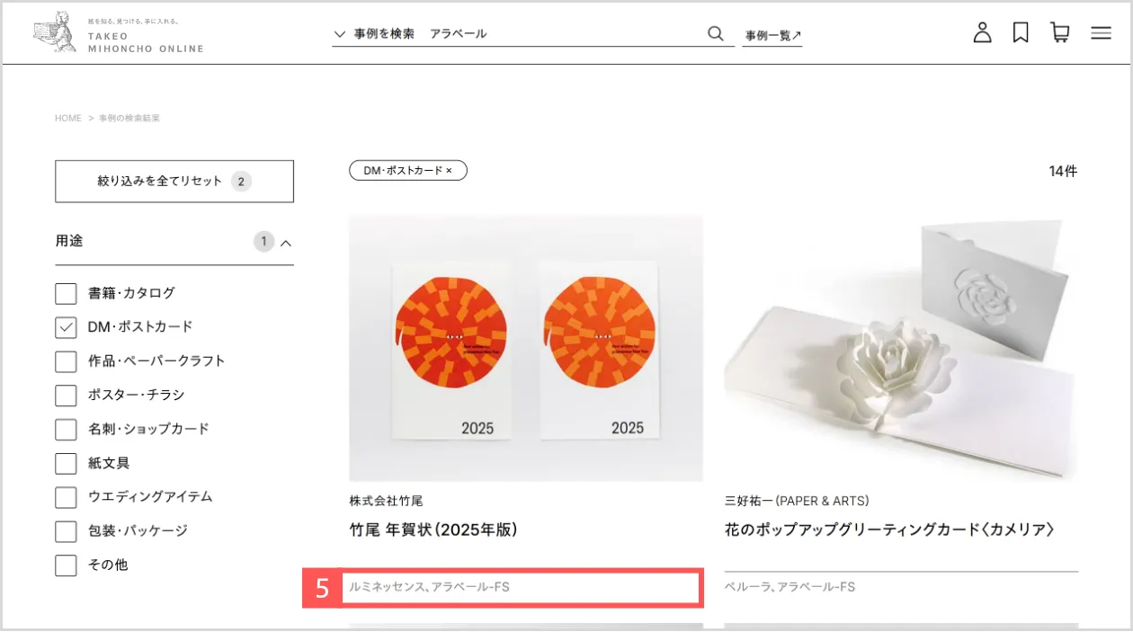 紙の手触り感や見た目を表現した単語から検索することができます。