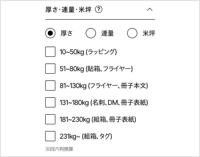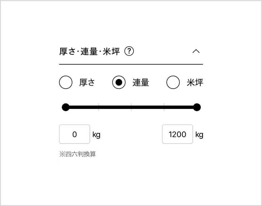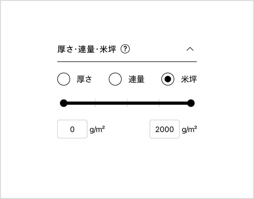 目安となる選択肢から選ぶ他、連量や米坪の範囲を指定して検索することができます。