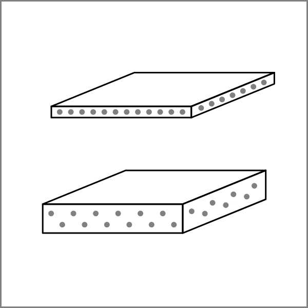 同じ枚数を重ねた場合の厚みが大きく異なります。