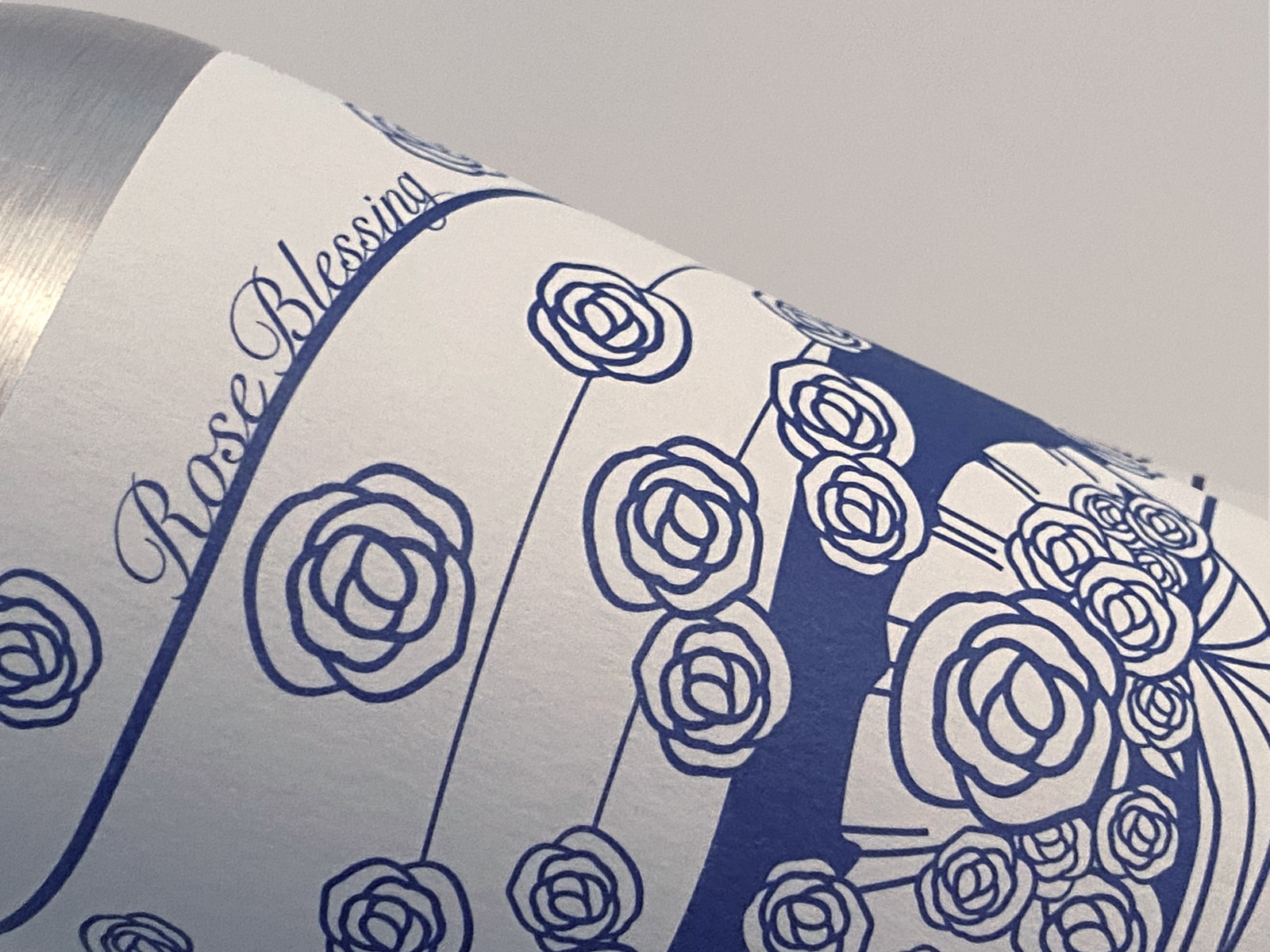 自然農法で育ったローズの厳選された香りと品質を伝えるため、優しく柔らかい風合いの紙を探していました。金属であるアルミボトルの印象を和らげ、お客様の手に直接触れる部分には肌を包み込むような質感を持たせたかったのです。何点かの候補の中から、清潔感がある「アラベールFS ウルトラホワイト」を選定しました。ブランドイメージに合致し印刷の仕上がりも安定しています。(田中優子さん)