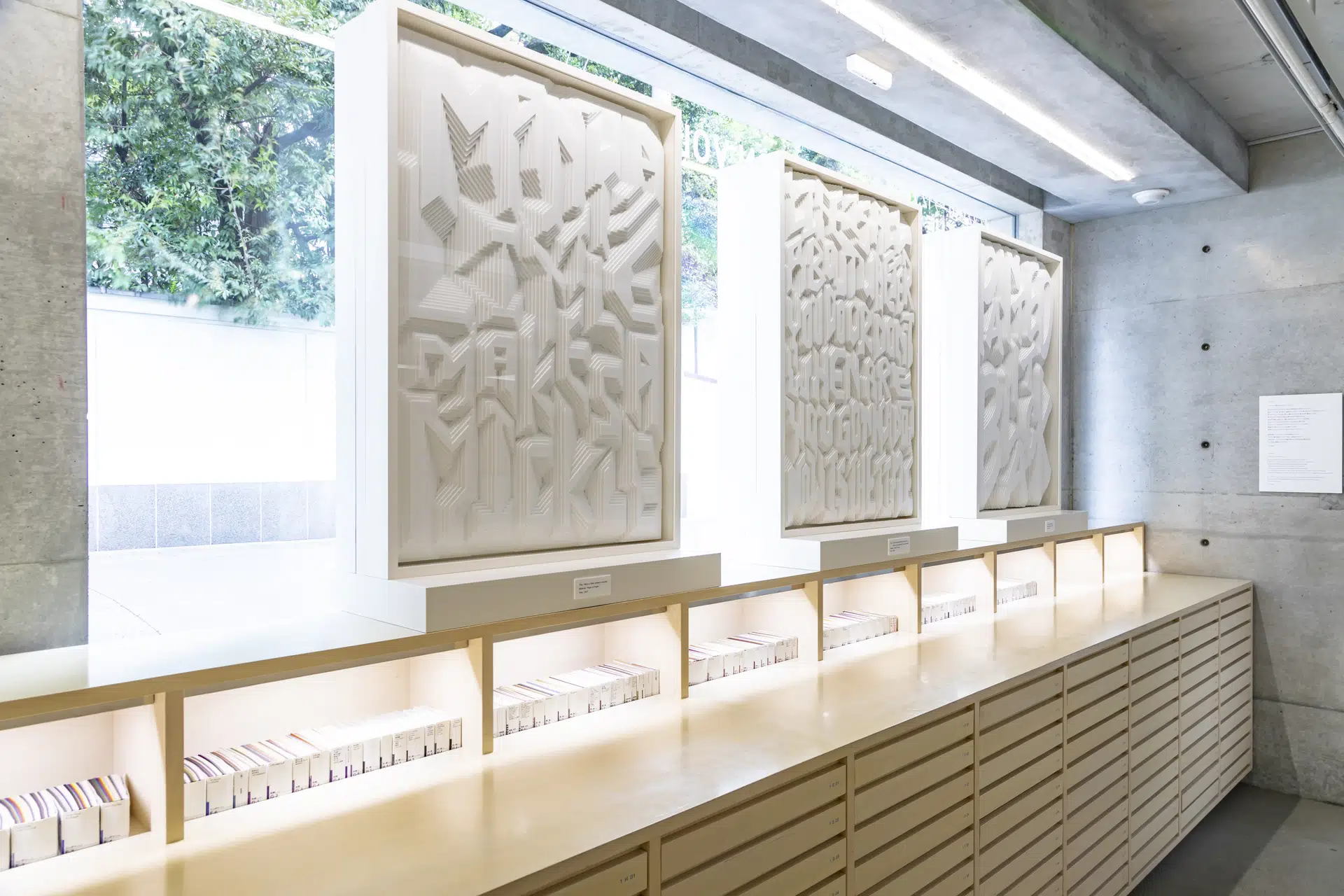 テーマは“Piled up messages”。 本人が日々感じている大切なメッセージを紙とスチレンボードで立体的に表現します。