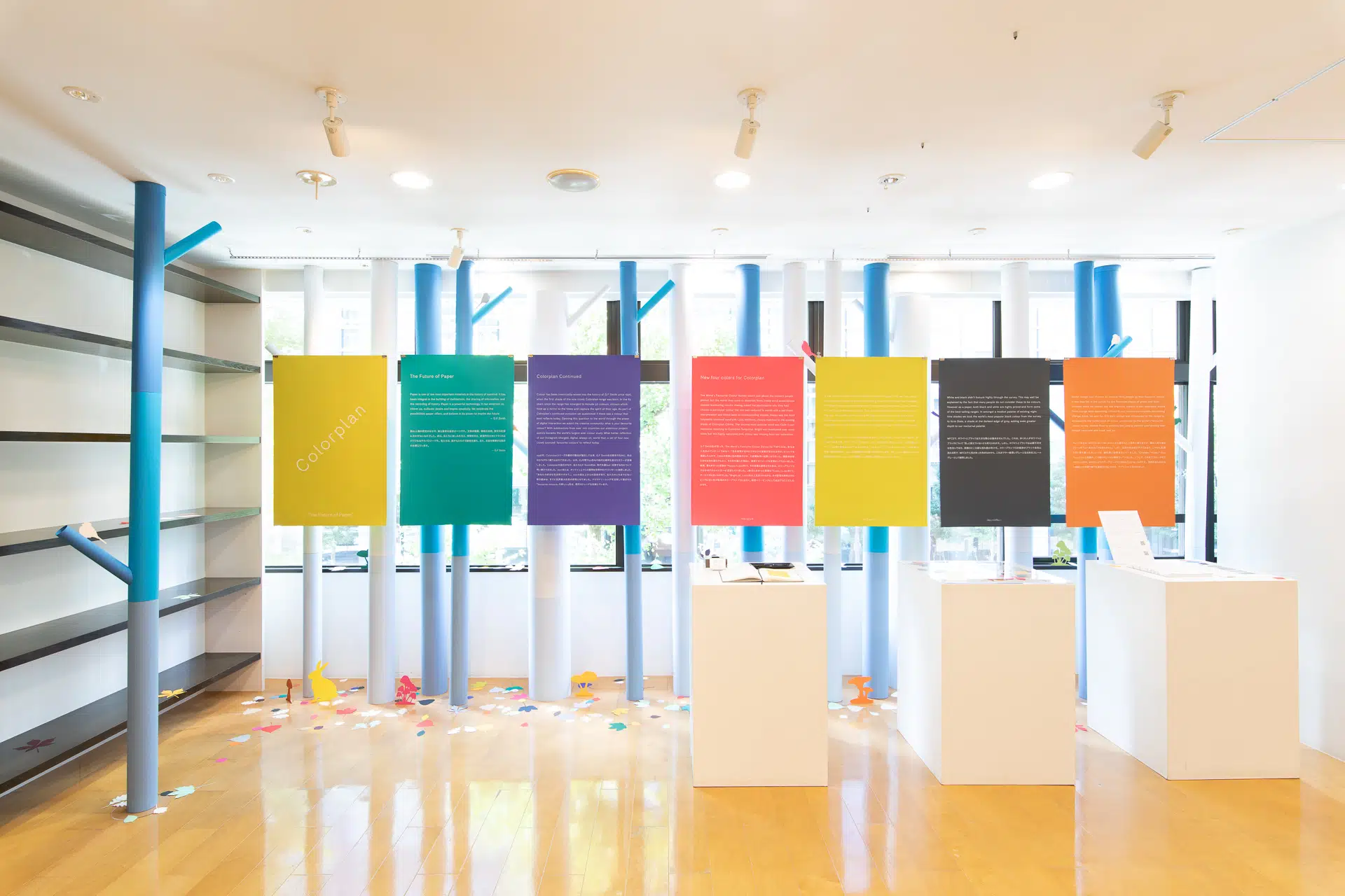 サスティナブルな素材としての紙の未来に光をあてた空間で、 55色もの色の魅力をぜひお楽しみください。