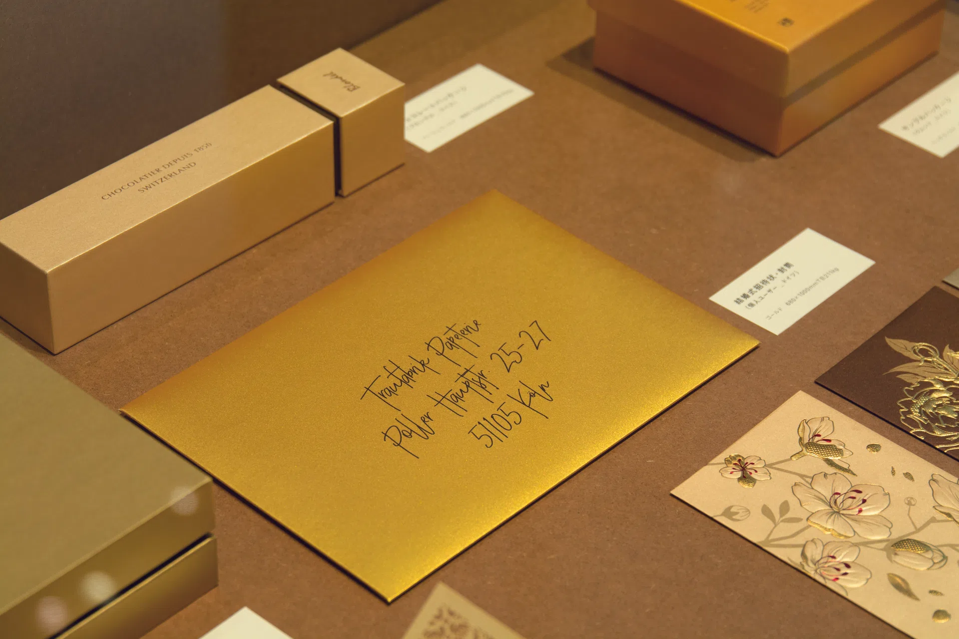 「グムンドゴールド-FS」は、色味と輝きの強弱のバリエーションで多彩なゴールドを揃えたファインペーパーです。